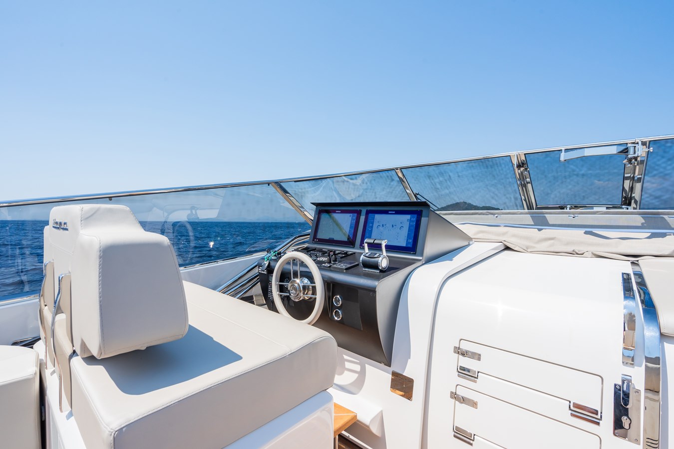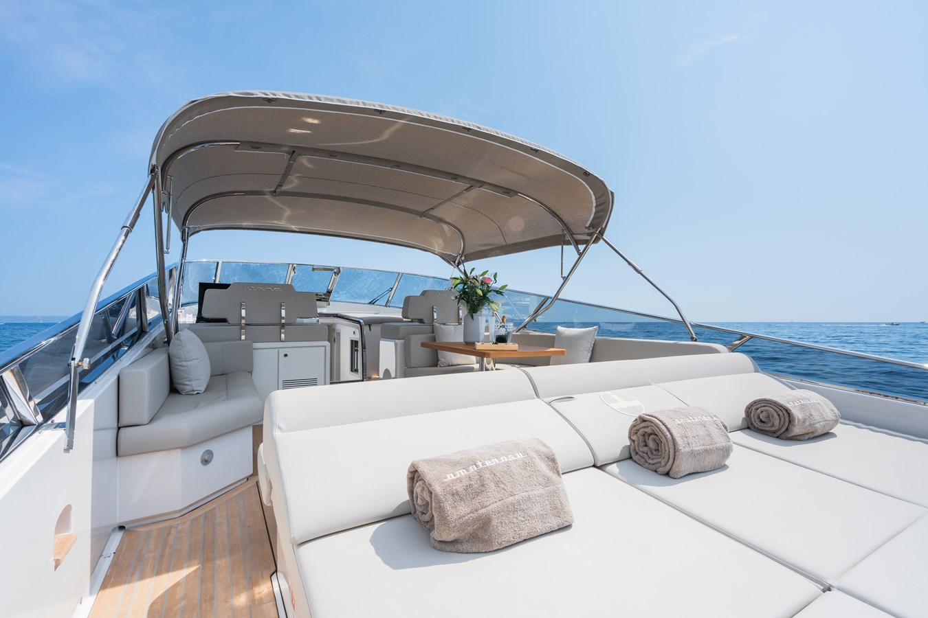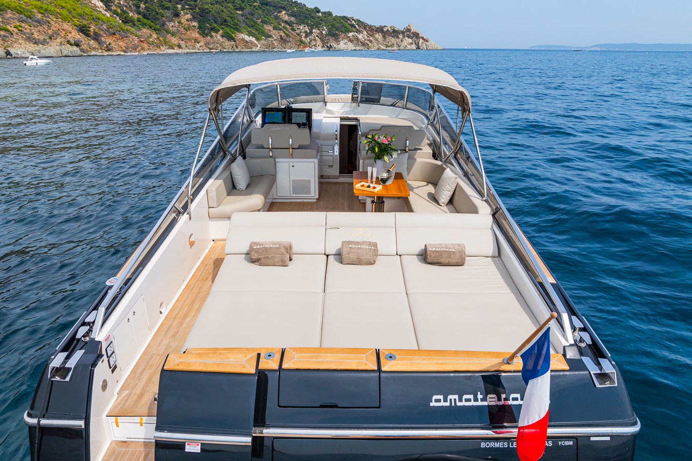 Experience the ultimate freedom at sea aboard the iconic Itama 62RS. Live the essence of Italian yachting style. Charter AMATERASU and set sail for a perfect day. With its unmistakable Mediterranean style, AMATERASU combines timeless elegance and thrilling performance. This 62-foot open yacht boasts sleek, powerful lines and an expansive deck layout that invites you to embrace the open air and sunshine. Relax on the generous fore and aft sun pads, or dive straight into the crystal-clear waters from the spacious swim platform. The wide cockpit offers plenty of room for socialising, with a comfortable dining area and well-designed spaces that let you make the most of every moment at sea. Powered by twin MAN engines, AMATERASU effortlessly delivers speed and stability, promising a smooth, exhilarating cruise along the coast. Whether you’re seeking a stylish day out with friends, a romantic getaway, or a luxurious escape to hidden coves, this yacht promises an unforgettable experience.