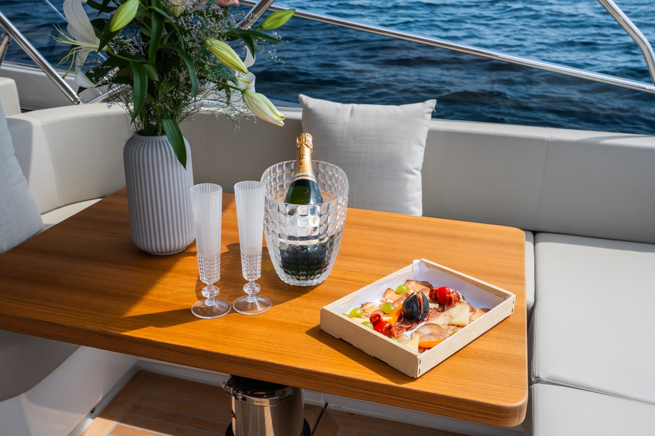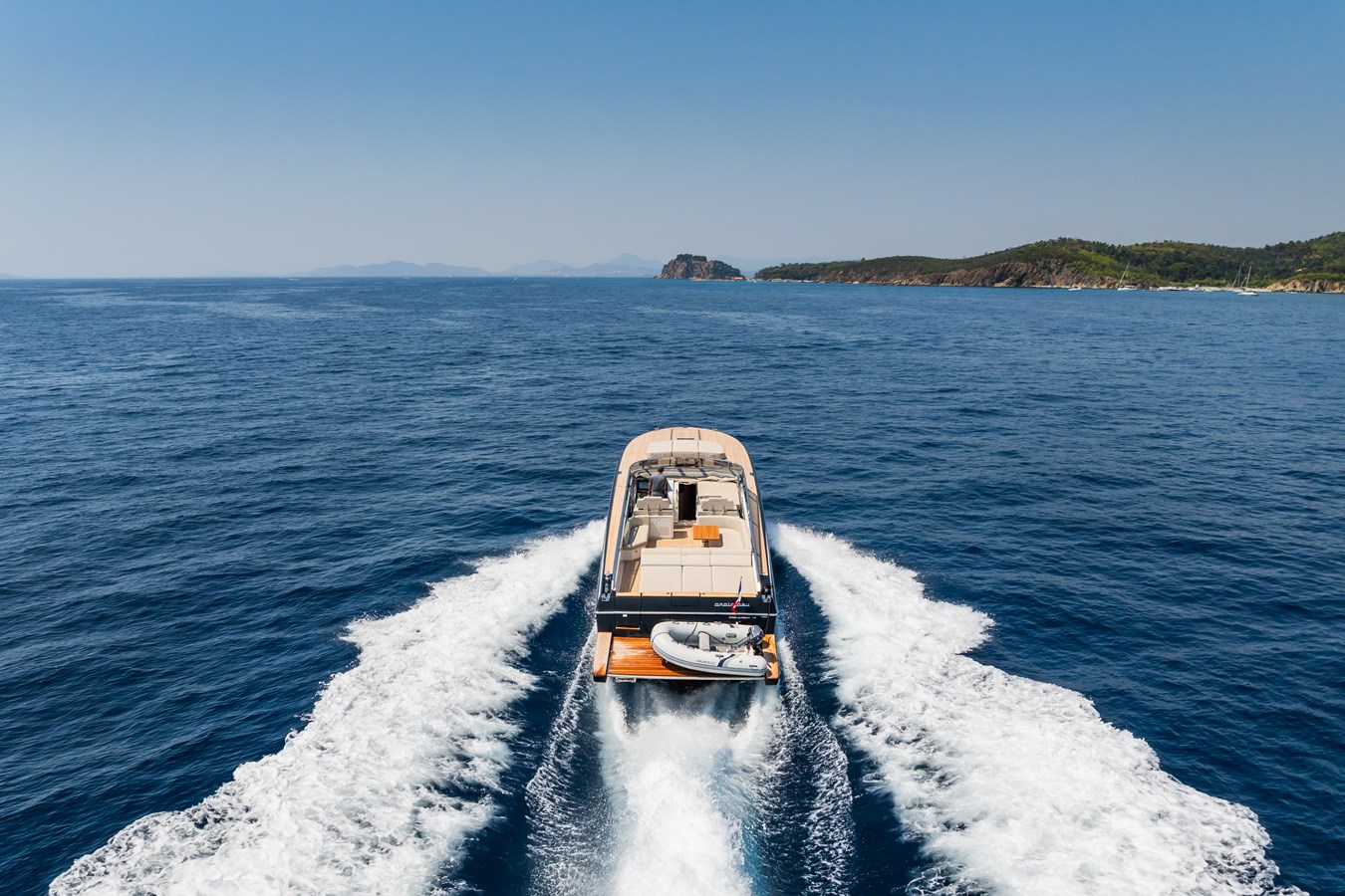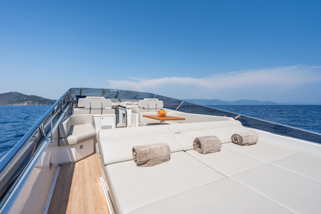 Experience the ultimate freedom at sea aboard the iconic Itama 62RS. Live the essence of Italian yachting style. Charter AMATERASU and set sail for a perfect day. With its unmistakable Mediterranean style, AMATERASU combines timeless elegance and thrilling performance. This 62-foot open yacht boasts sleek, powerful lines and an expansive deck layout that invites you to embrace the open air and sunshine. Relax on the generous fore and aft sun pads, or dive straight into the crystal-clear waters from the spacious swim platform. The wide cockpit offers plenty of room for socialising, with a comfortable dining area and well-designed spaces that let you make the most of every moment at sea. Powered by twin MAN engines, AMATERASU effortlessly delivers speed and stability, promising a smooth, exhilarating cruise along the coast. Whether you’re seeking a stylish day out with friends, a romantic getaway, or a luxurious escape to hidden coves, this yacht promises an unforgettable experience.