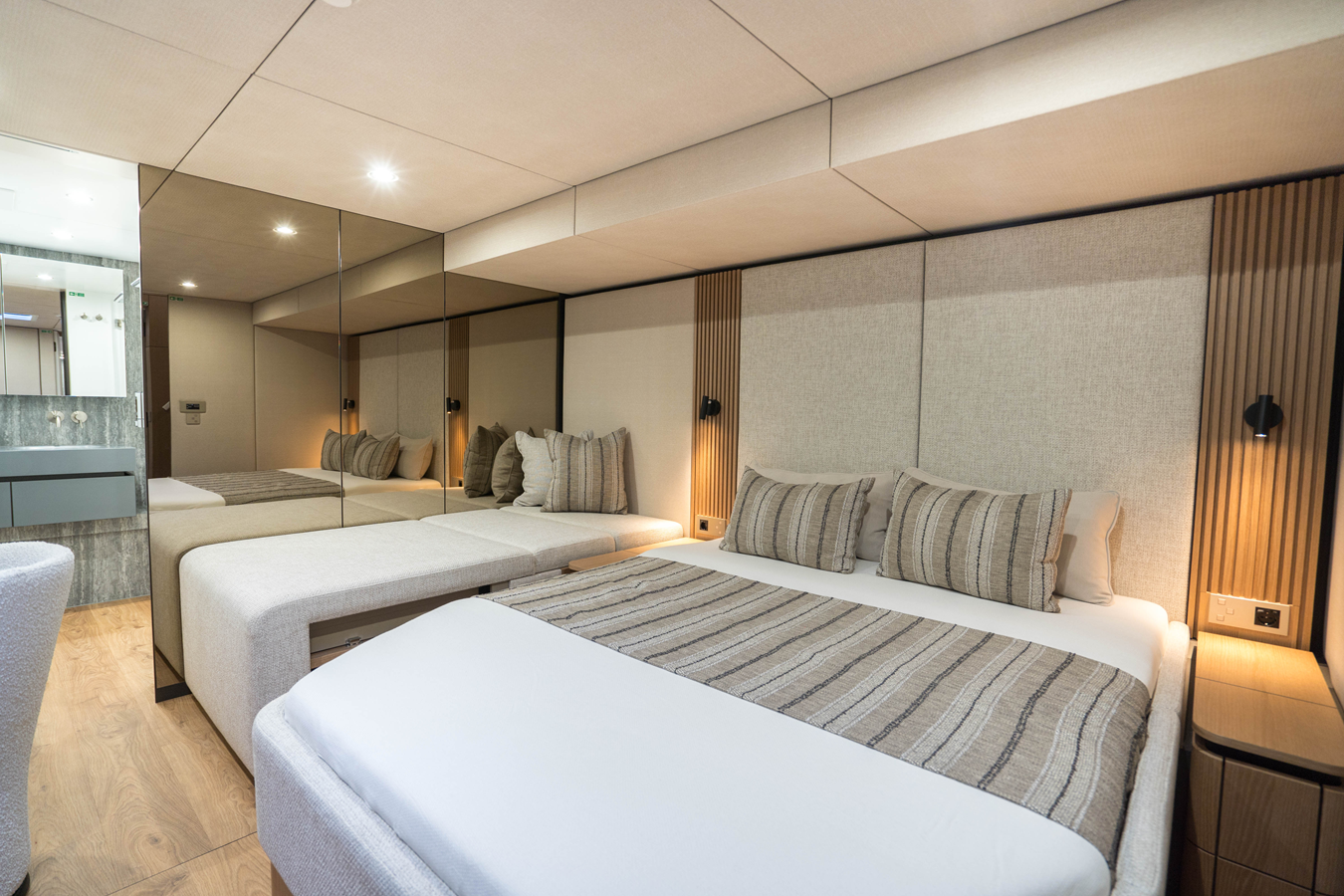 Step aboard Sunreef 70 ANKAWER IV, a sophisticated sailing catamaran designed for both relaxation and adventure on the open sea. With a smart galley-down layout, this vessel maximizes the saloon space, creating a bright and airy environment ideal for socializing or unwinding.Accommodating up to eight guests, ANKAWER IV features three elegant guest cabins and a spacious master suite, all thoughtfully appointed for comfort and privacy. Dedicated crew quarters ensure seamless, discreet service throughout your voyage.Navigation is effortless with helm stations both on the flybridge and inside the saloon, allowing for smooth sailing in all conditions. Whether you’re lounging on deck, taking in the views from the flybridge, or enjoying quiet moments in your private cabin, ANKAWER IV offers a refined, unforgettable experience at sea.