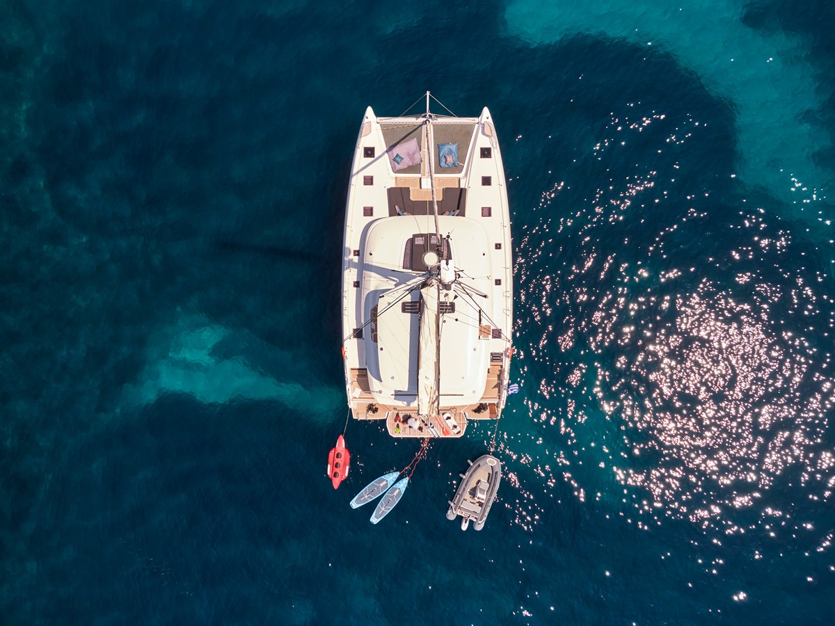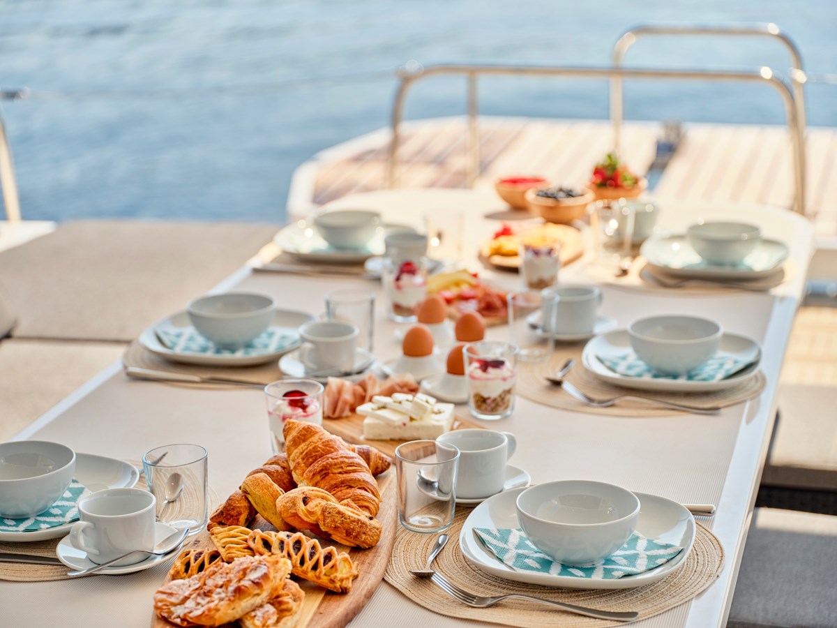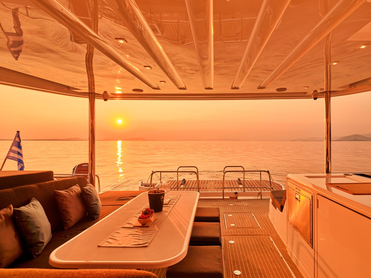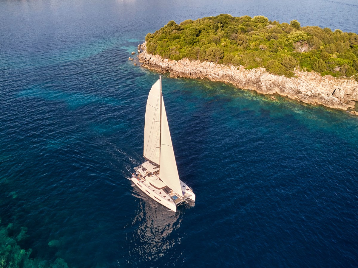 Our new Lagoon 55, Azul, is characterized by an impressive sense of spaces maximizing comfort while maintaining great performance under sail. The new on-board access and circulation concepts offer a brand-new sensation. The transoms are no longer just a circulation area but a real living space at anchor, for cooking in the outdoors or simply for dreaming with your feet in the water. Her high-end interior touches and her natural sunlight in her saloon and rooms are meant to evoke feelings of peace and harmony.
