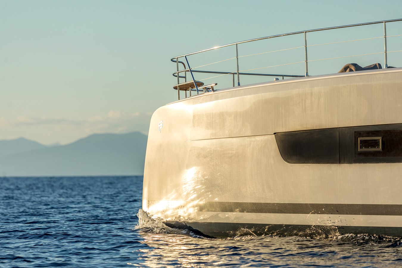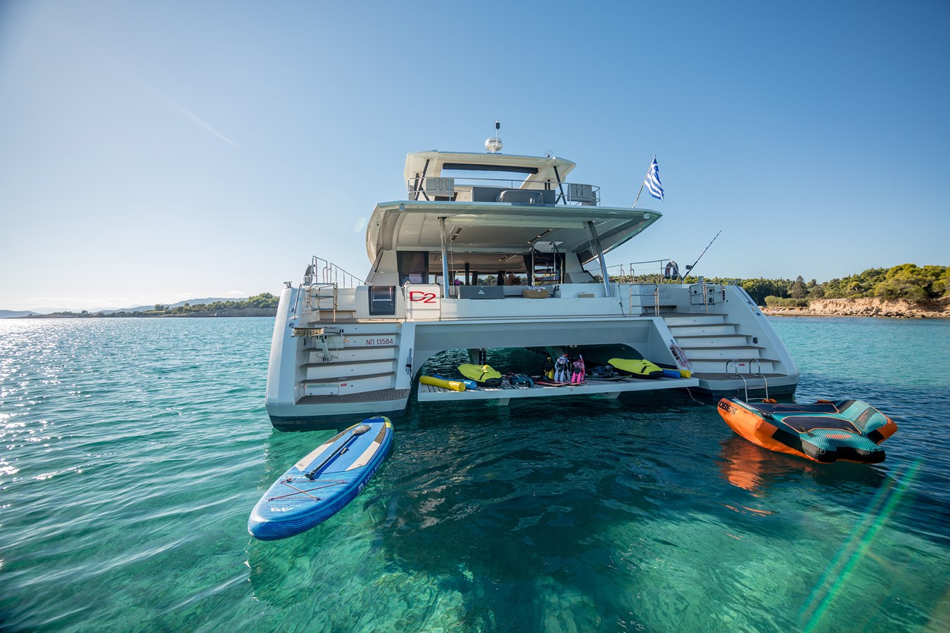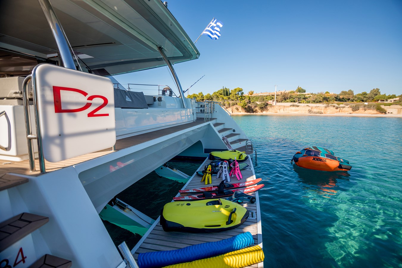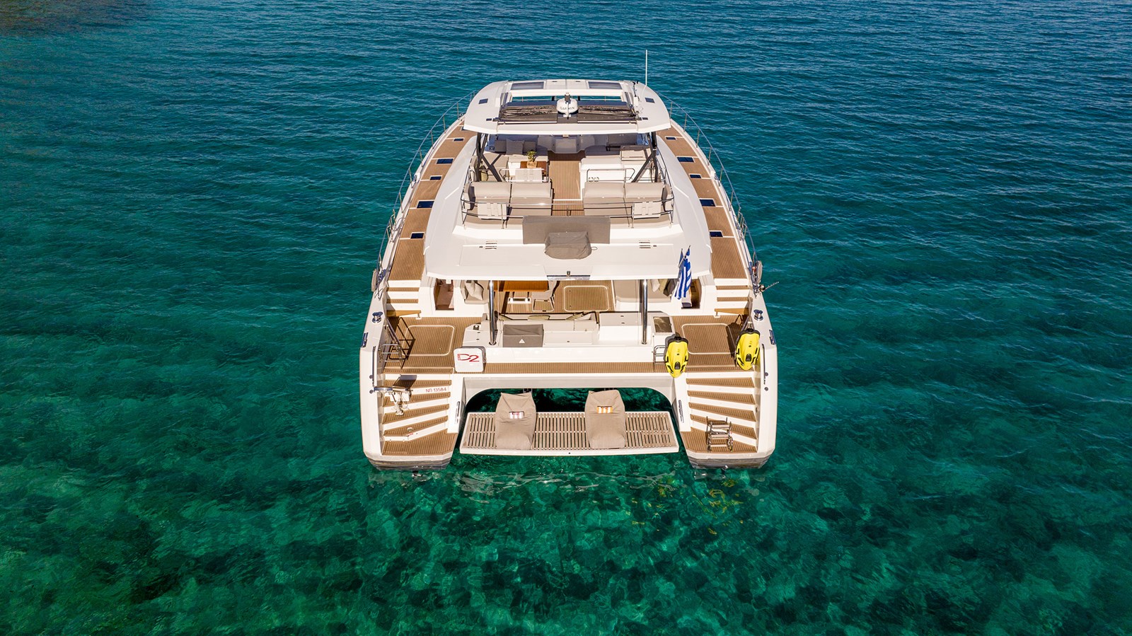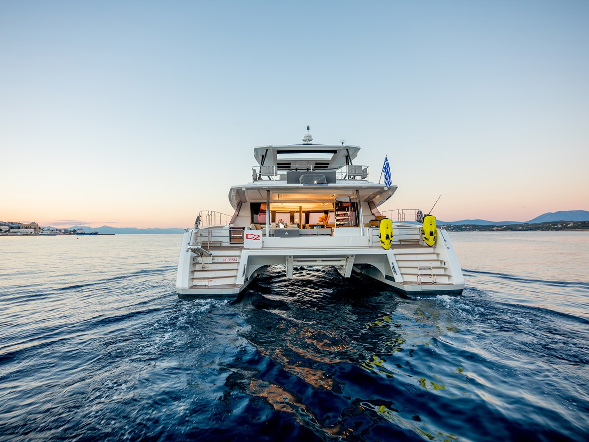 Synonymous with uncompromising luxury where space & comfort equate with elegance & dynamic vision, D2 is the ultimate expression of a truly cruising experience. Let yourself be won over the comfort of Master suite of 22 sq.m., the ultimate relaxation in the jacuzzi of front lounge and the ample flybridge designed for unforgettable social occasions. D2 is the power catamaran to widen your perspectives, to heighten your emotion and to share what truly moves you.