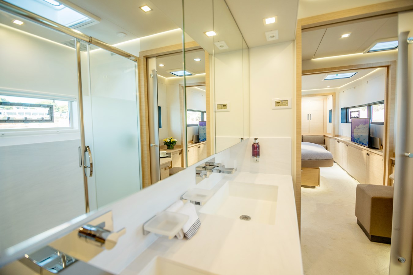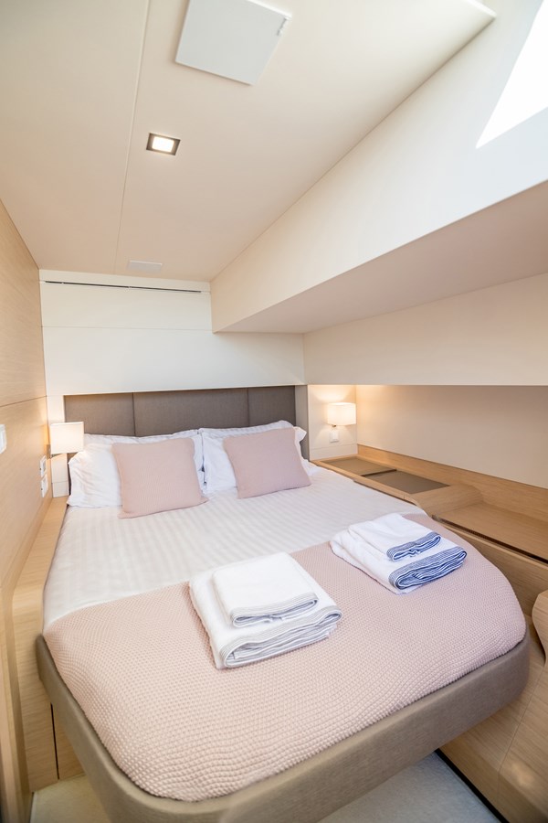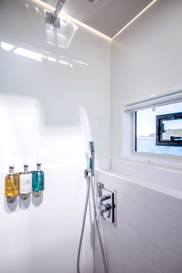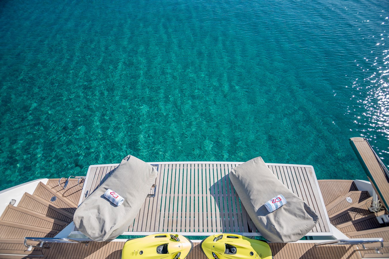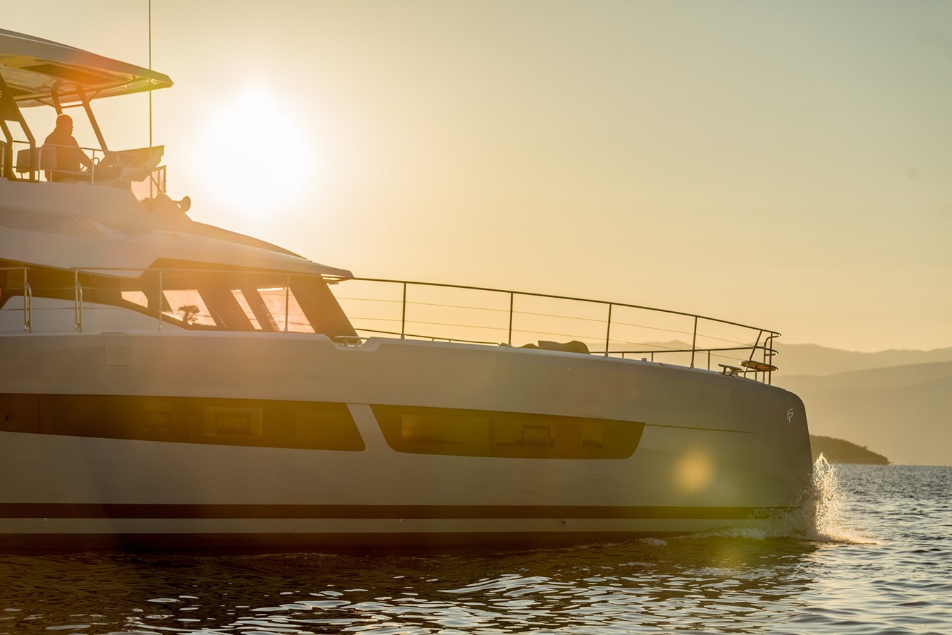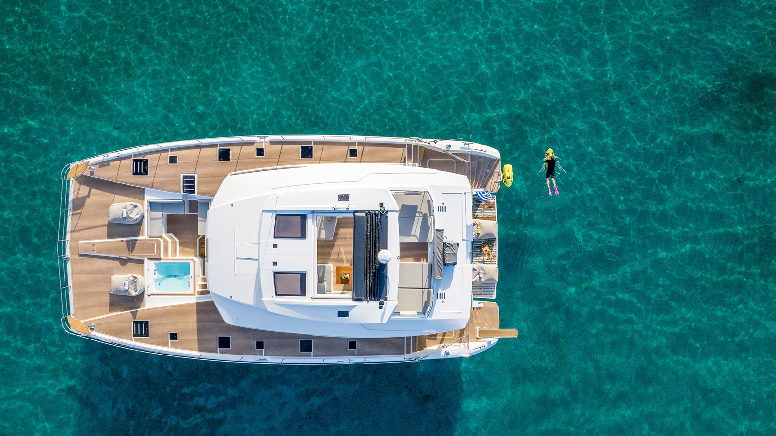 Synonymous with uncompromising luxury where space & comfort equate with elegance & dynamic vision, D2 is the ultimate expression of a truly cruising experience. Let yourself be won over the comfort of Master suite of 22 sq.m., the ultimate relaxation in the jacuzzi of front lounge and the ample flybridge designed for unforgettable social occasions. D2 is the power catamaran to widen your perspectives, to heighten your emotion and to share what truly moves you.