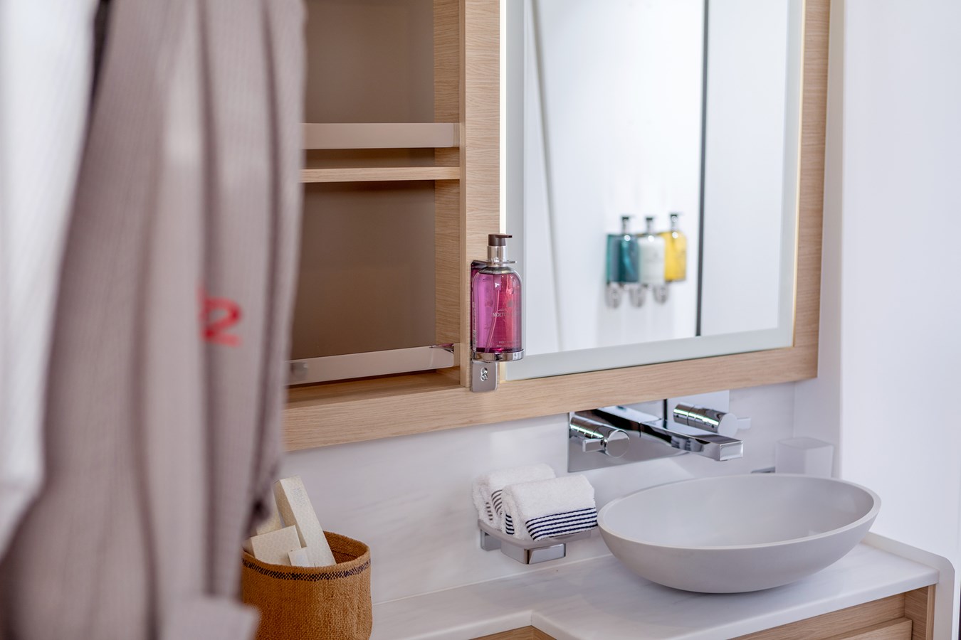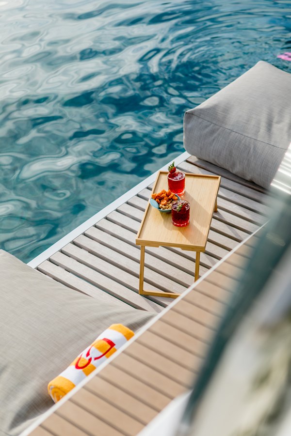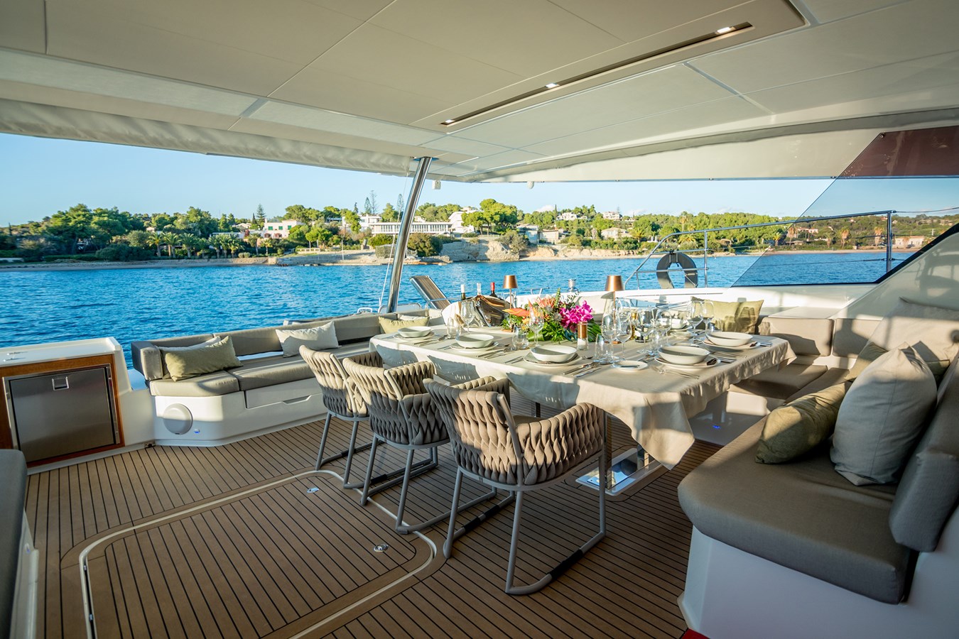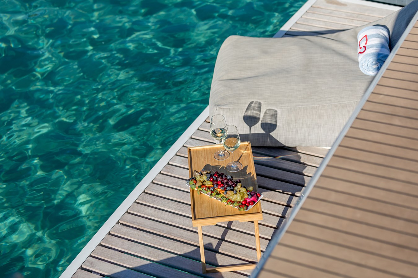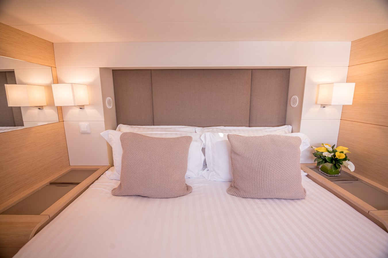Synonymous with uncompromising luxury where space & comfort equate with elegance & dynamic vision, D2 is the ultimate expression of a truly cruising experience. Let yourself be won over the comfort of Master suite of 22 sq.m., the ultimate relaxation in the jacuzzi of front lounge and the ample flybridge designed for unforgettable social occasions. D2 is the power catamaran to widen your perspectives, to heighten your emotion and to share what truly moves you.