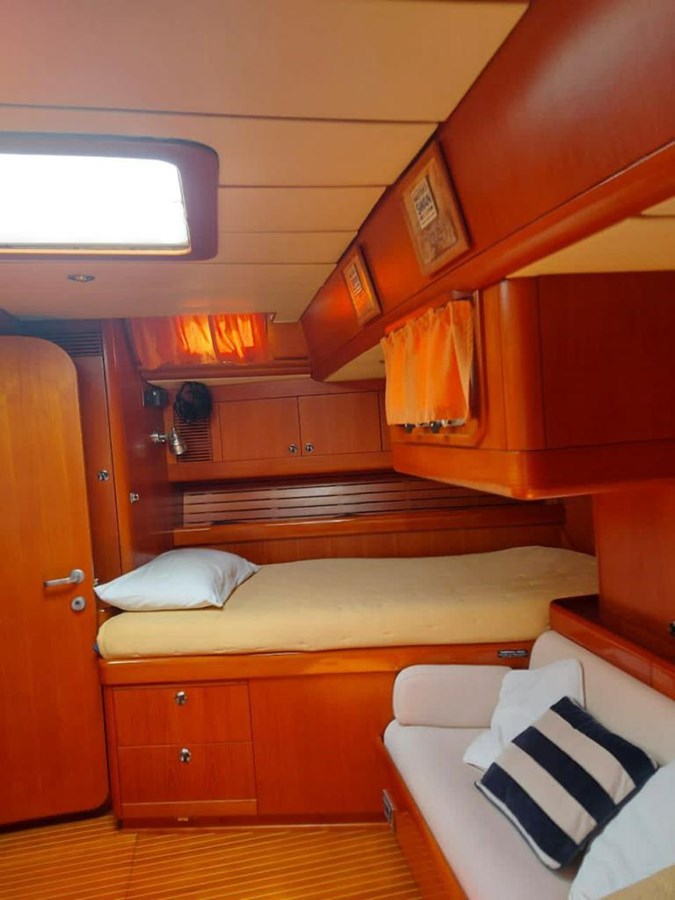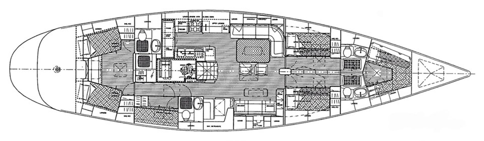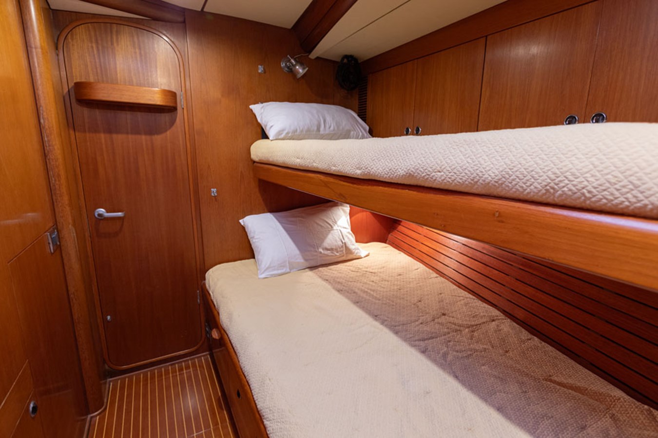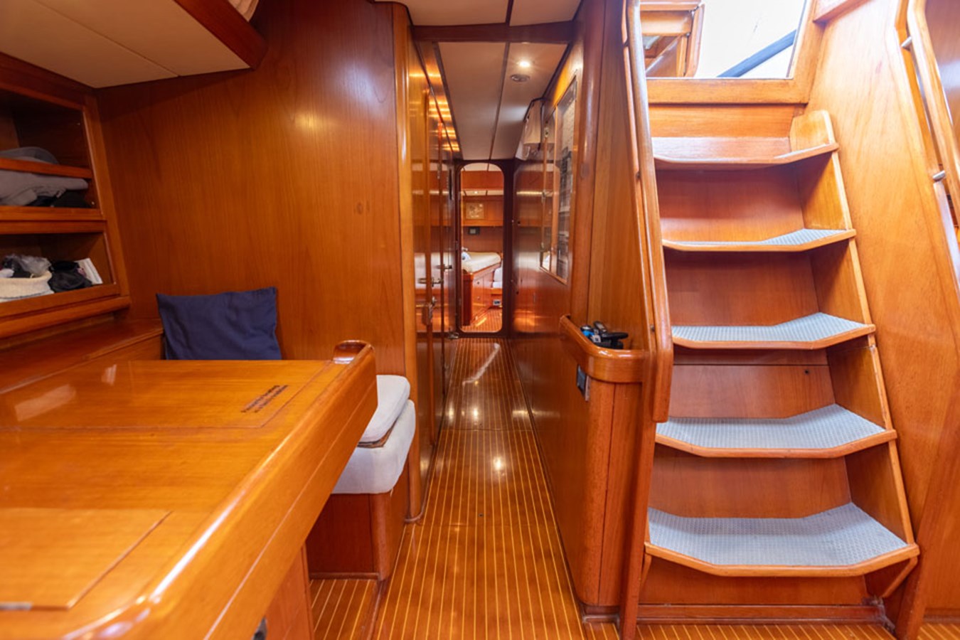 For the interiors, DEFIANCE parades sleek arrangements and generous spaces that do not compromise on comfort, despite the boat's racing orientation. It upholds the essence of classic sailing through its galley and accommodation spaces, all composed with thoughtful consideration for practicality and style. Her warm and inviting living quarters cater to the needs of every seafarer, from private cabins that offer personal space to common areas meant for sharing – whether that be a meal, a story, or even a coveted victory.