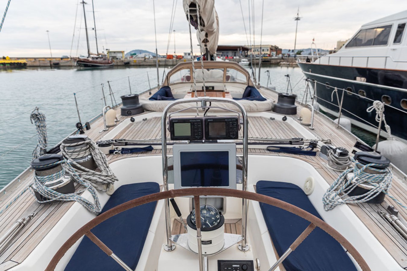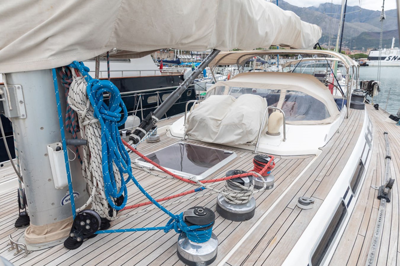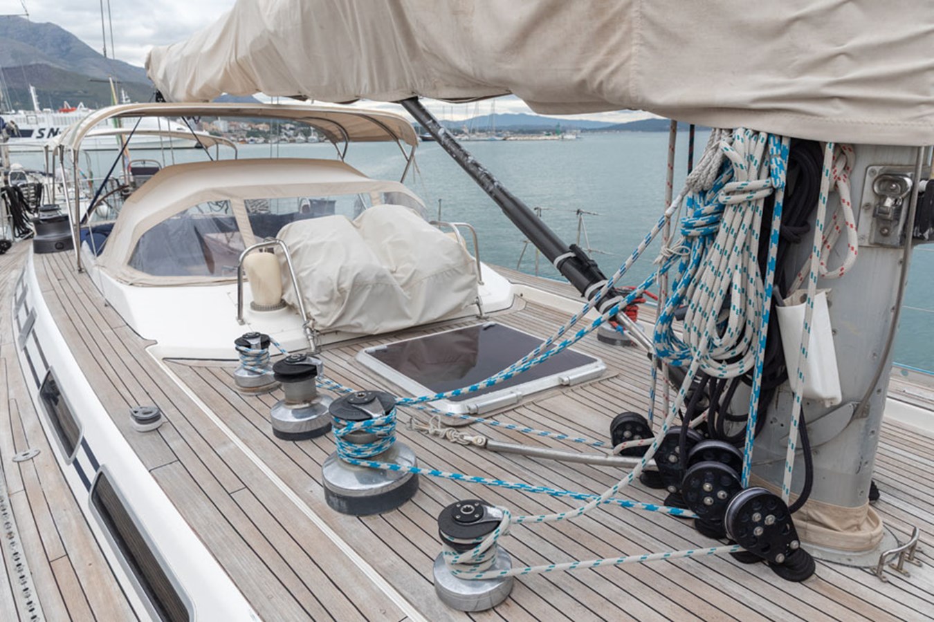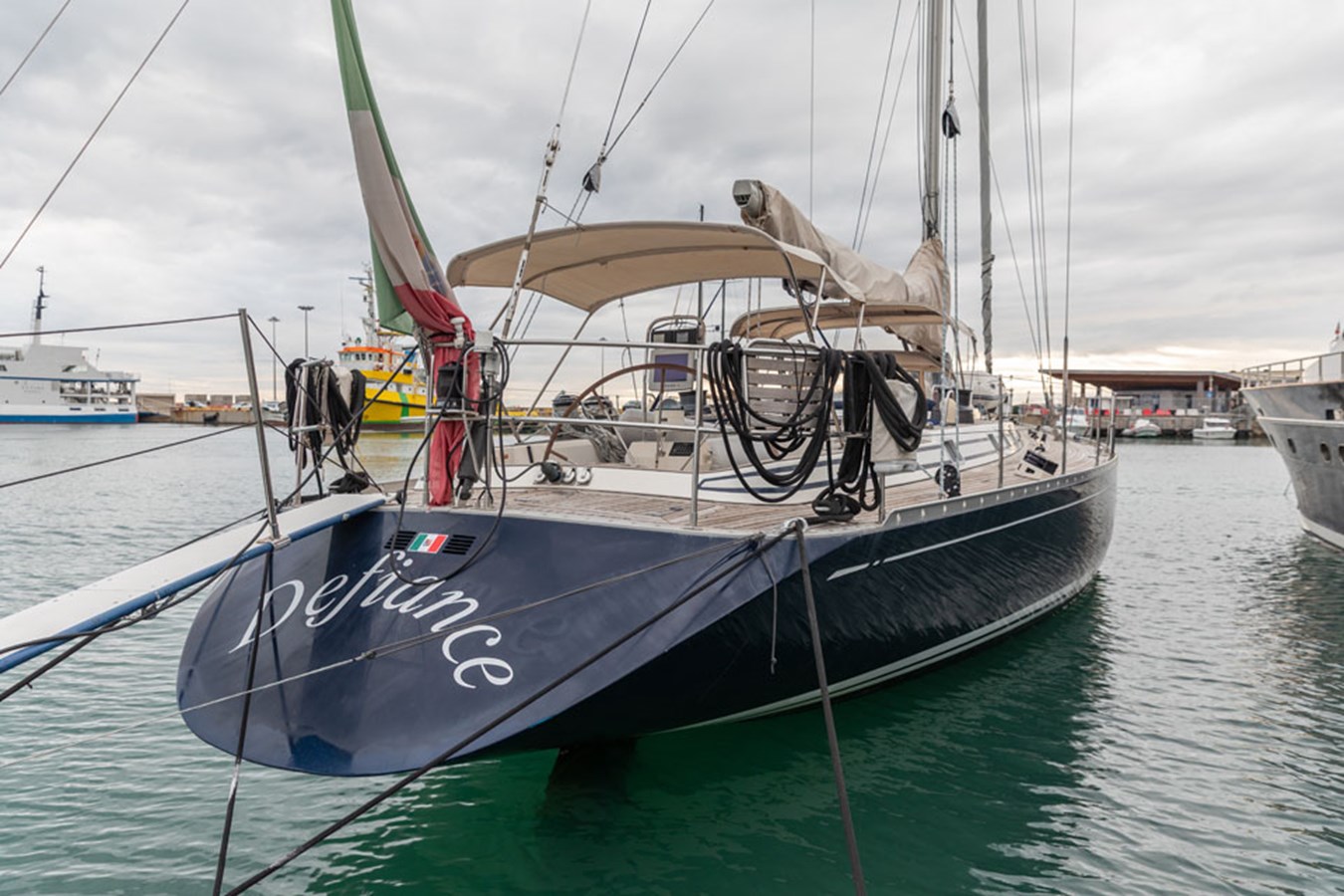 This sailboat bespeaks superior craftsmanship with elegantly curved lines that are suited for both racing performance and cruising comfort. Its hull is streamlined and robust, designed to cut through the ocean with ease and precision, while the keel is engineered for stability at high speeds and in challenging conditions. On the DEFIANCE, sailing becomes less about the destination and more about the journey, thanks to its ability to merge high-octane thrills with serene, gentle glides across the water.