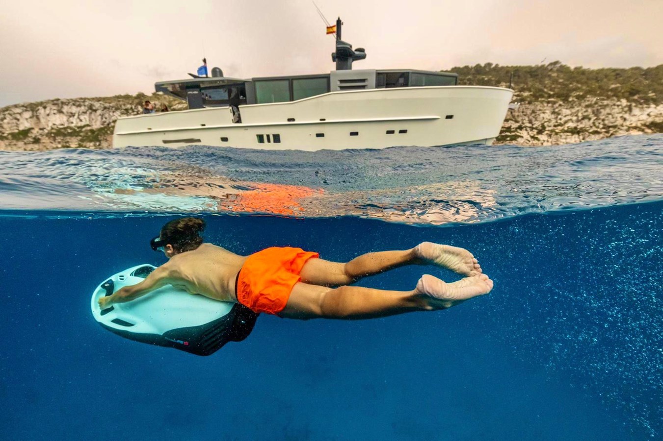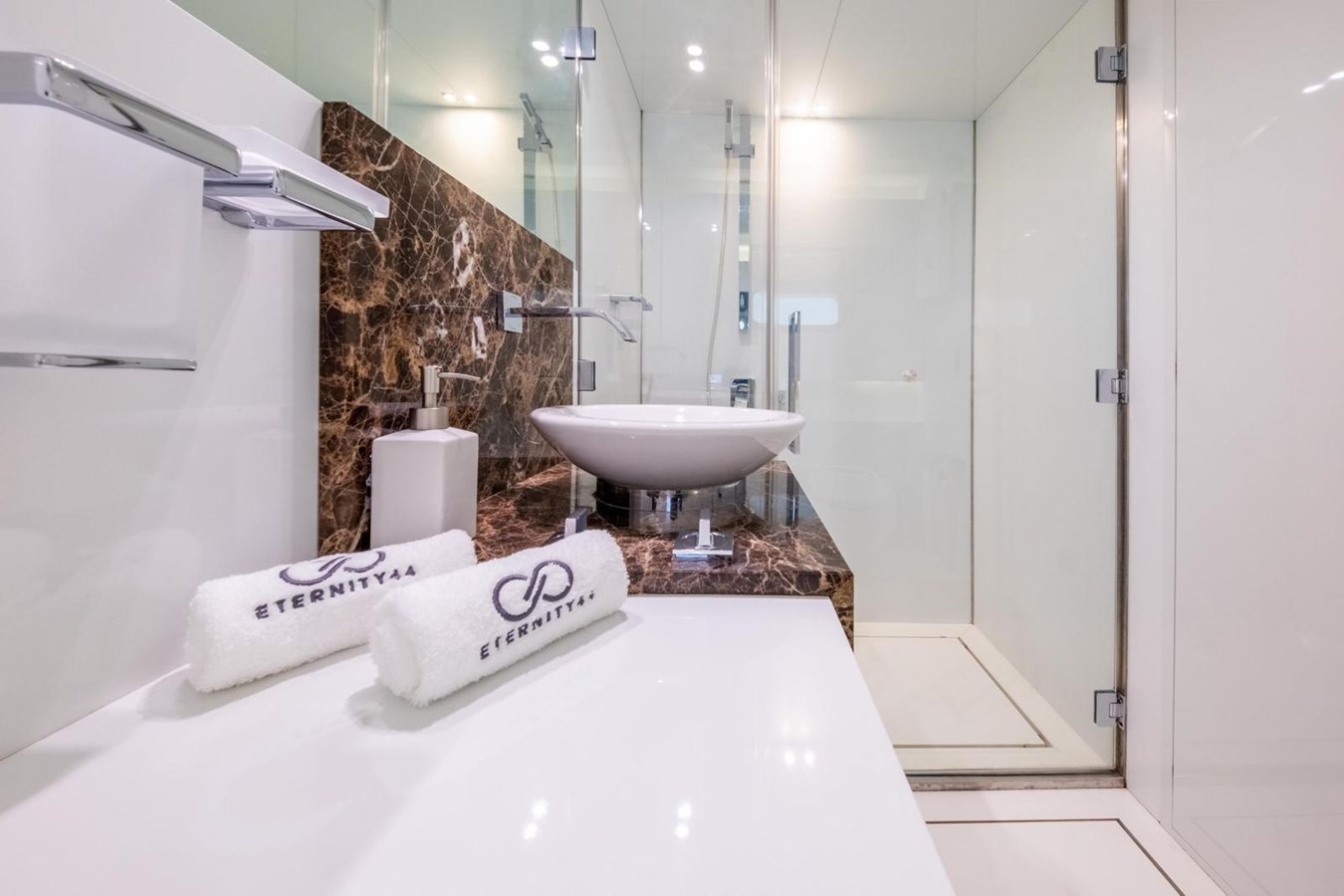 Accommodation is for eight guests in four cabins comprising a master suite, VIP suite and two twins. All guest cabins have entertainment centers and en-suite bathroom facilities, while the crew quarters sleep three staff members.