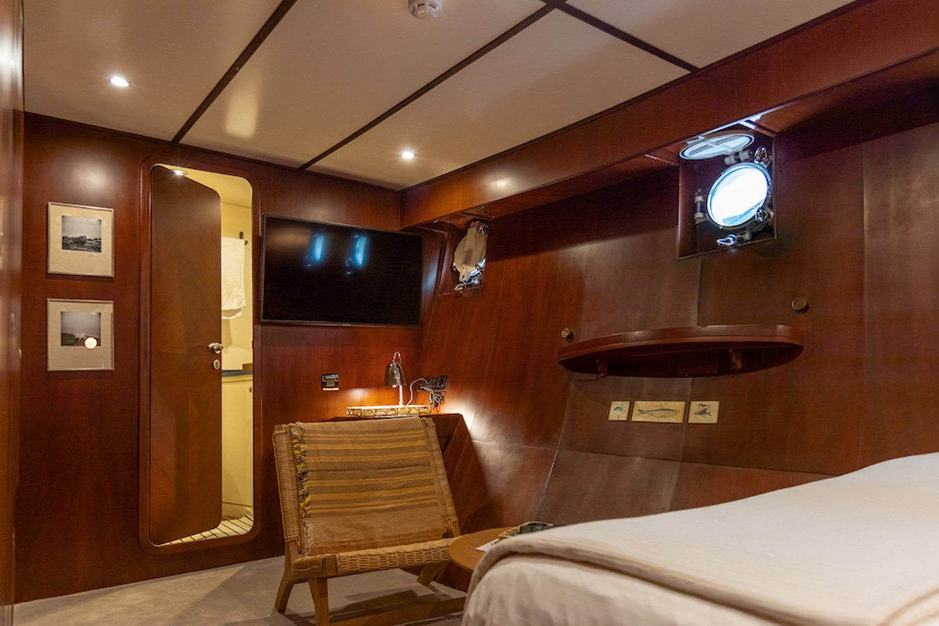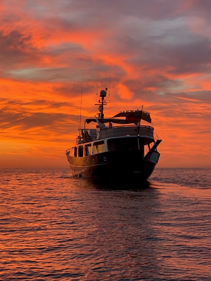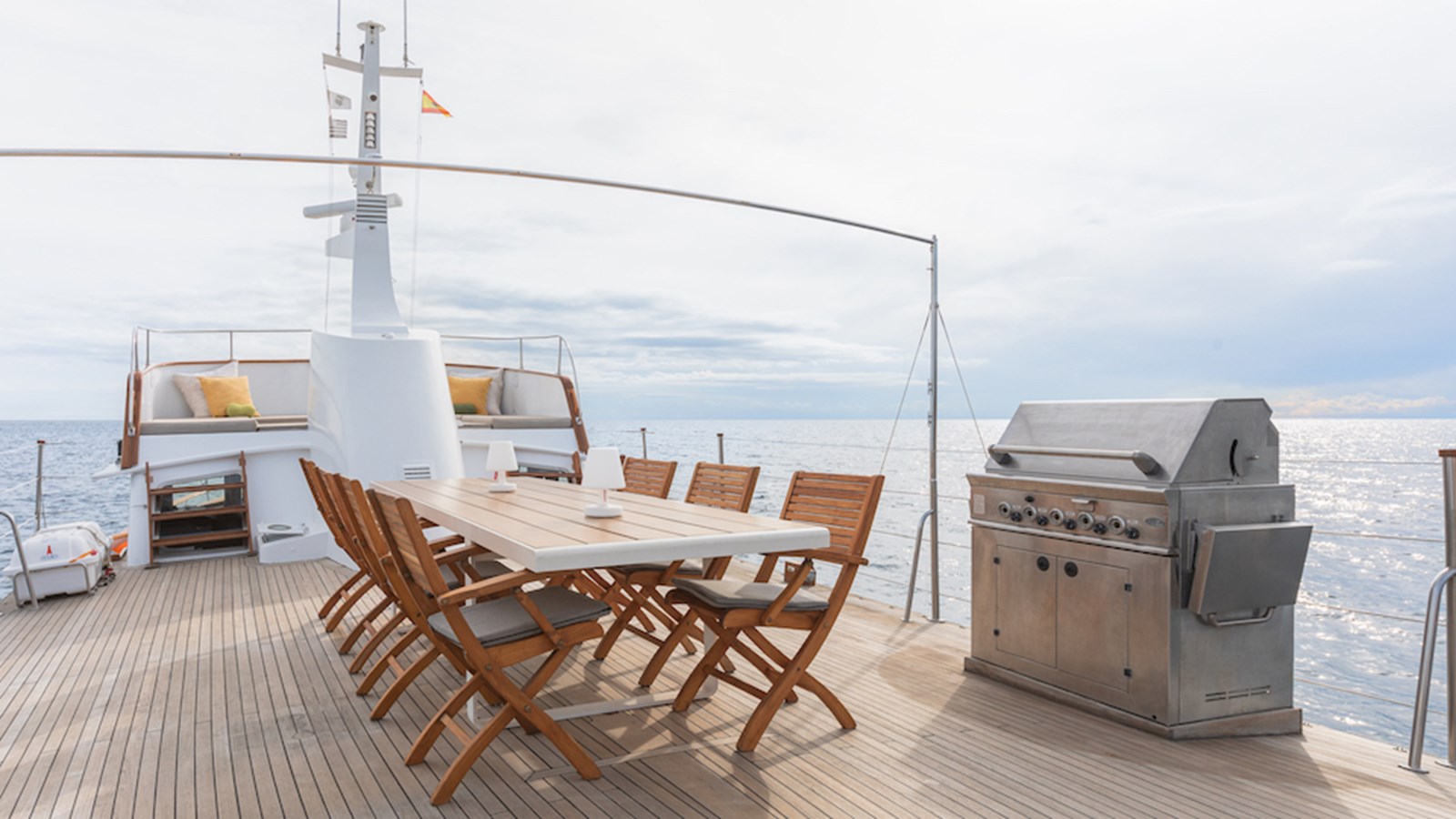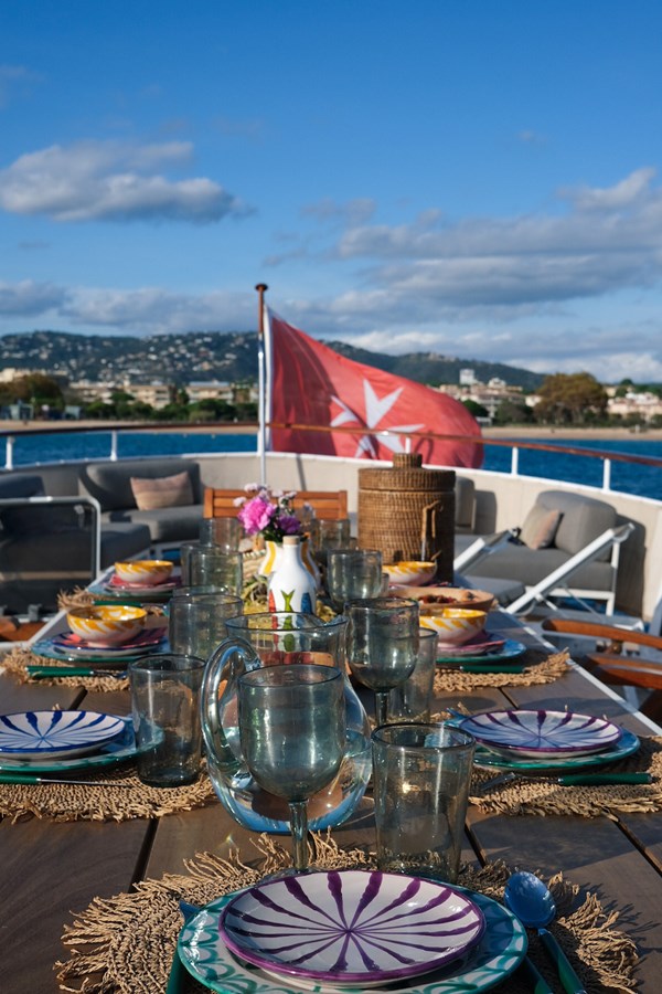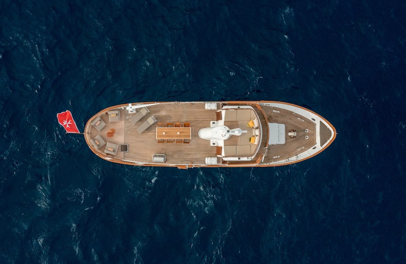 Built in the famous Berwick shipyard in 1962, Fairmile is a vintage motor yacht that has been lovingly restored to her former glory. Hosting up to six people, accommodation is comprised of three charming cabins, all with full en-suite facilities.The living area boasts a beautiful wooden bar, an elegant six-seated mahogany dining table, and a luxurious sofa area.Up on top, the decks are laid out for ultimate relaxation; sun loungers, sofas, a large barbecue, and dining tables on both the upper and main deck.