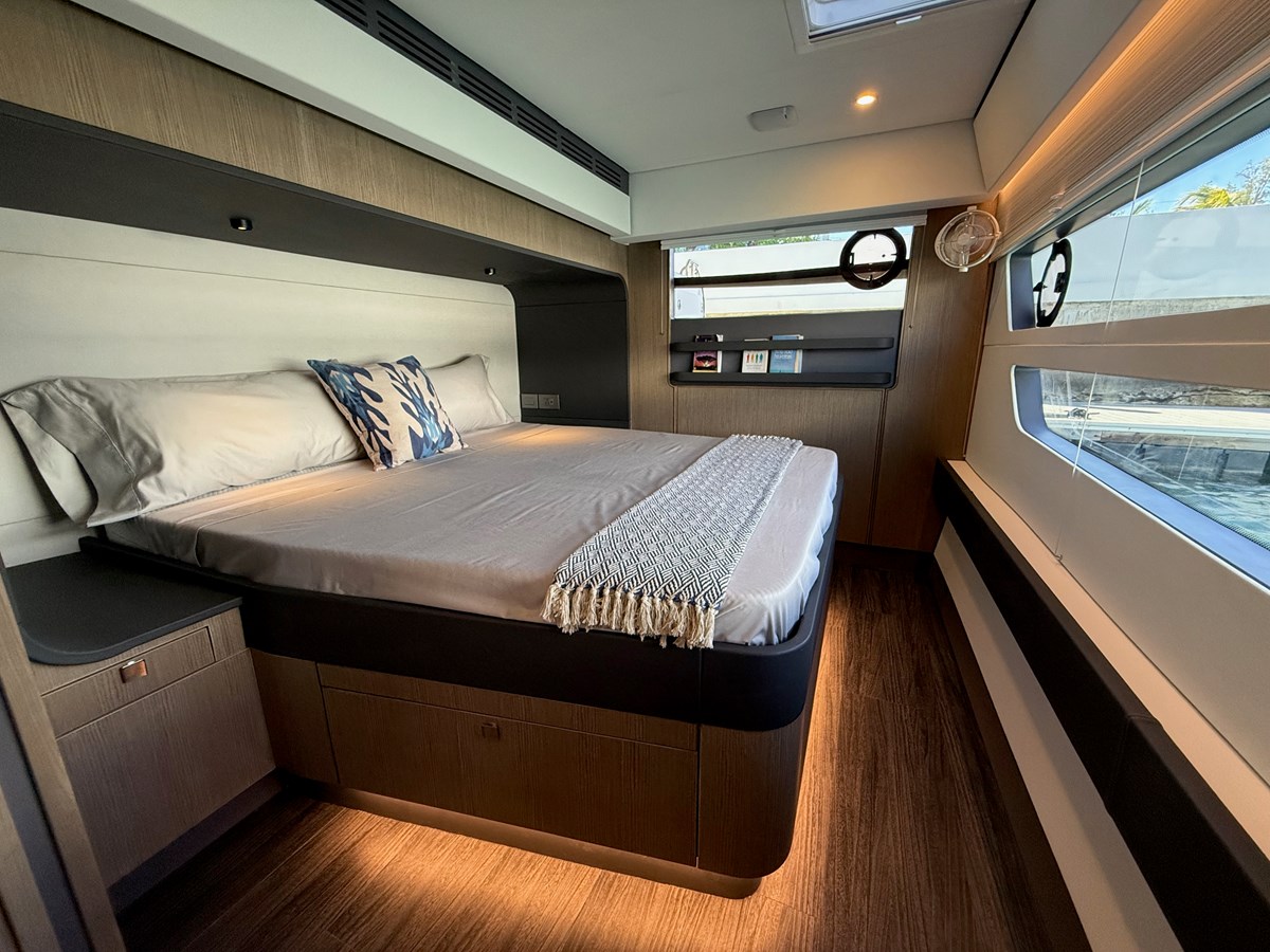 The Sixty Solar Sail caters to a party of 4 with 2 dedicated crew cabins for exceptional service.Luxurious accommodations, including a spacious master cabin with an ensuite and a VIP cabin, both offer privacy and comfort.Featuring electric heads and an array of watercraft including a 13’ dinghy and paddleboards for ultimate enjoyment and exploration.Delight in Sixty Solar Sail's gourmet dining, offering local flavors for every meal, tailored to all diets, defining onboard luxury.Savor the sun on the comfortable lounge area and soak up the scenery under the sun awning or rinse off with the deck shower after a swim.There are no extra charges for holiday bookings onboard the Sixty Solar Sail.Unique cabin charter opportunity available for couples to share the luxury experience with a small group.