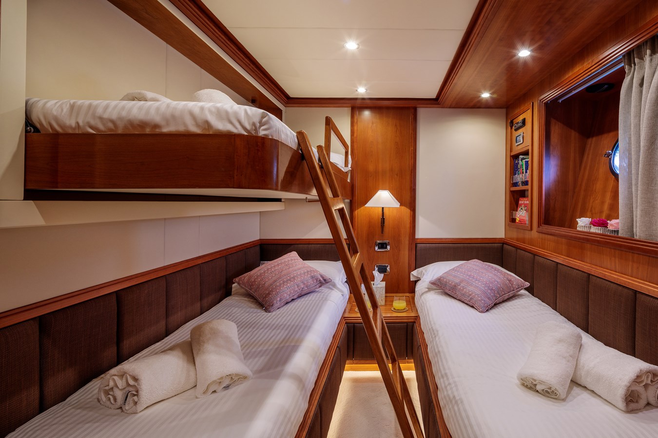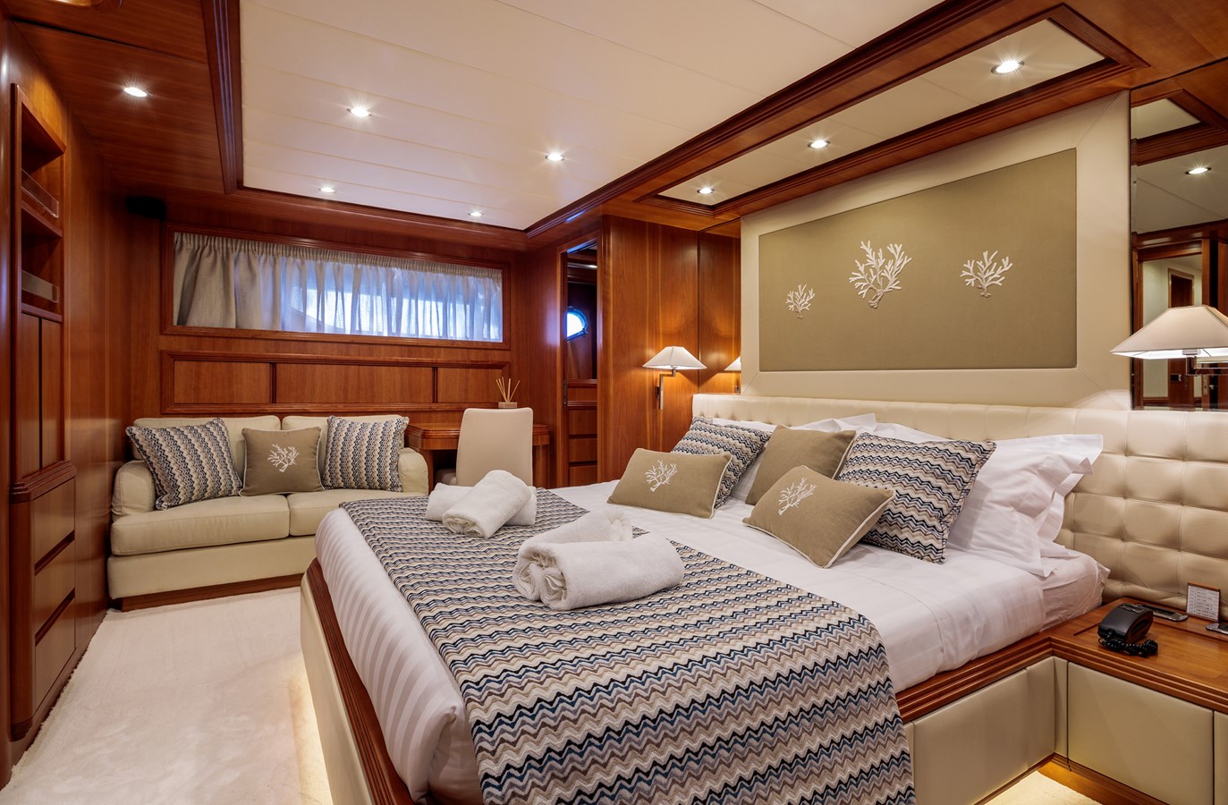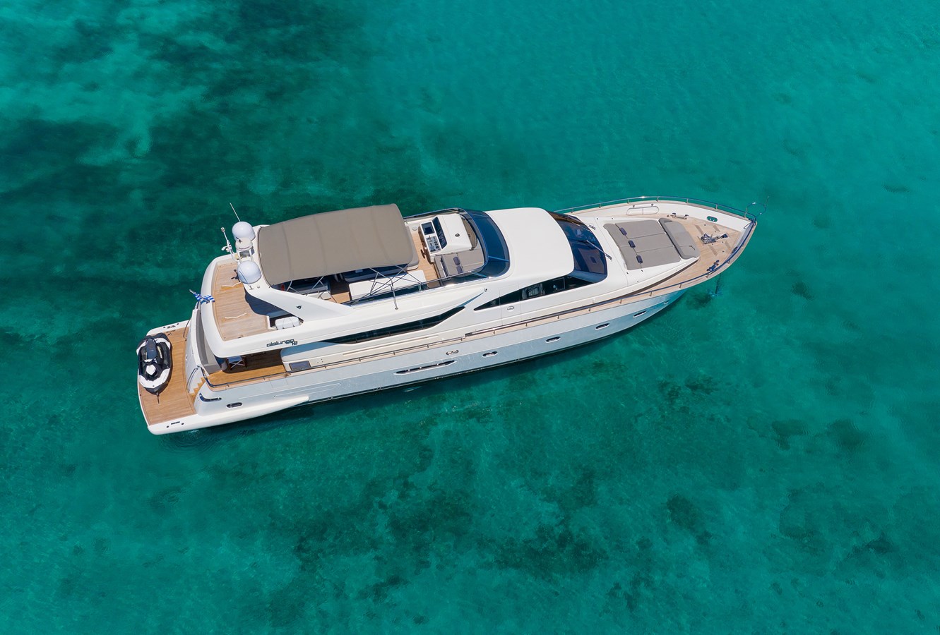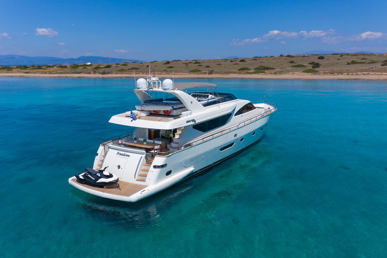 Freedom is a 23,8m stunning motor-yacht built by the renowned Italian shipyard Spertini Alalunga. The yacht is a floating heaven. Inside, four spacious cabins in the lower deck comfortably accommodate 10 guests. The experienced, friendly and dedicated crew of 4 will welcome you on-board and will ensure a relaxed luxury yachting experience. Freedom meets and exceeds international standards. This luxury yacht will satisfy even the most demanding tastes. She offers plenty of outdoor space and a vast variety of water toys which will entertain everyone onboard.