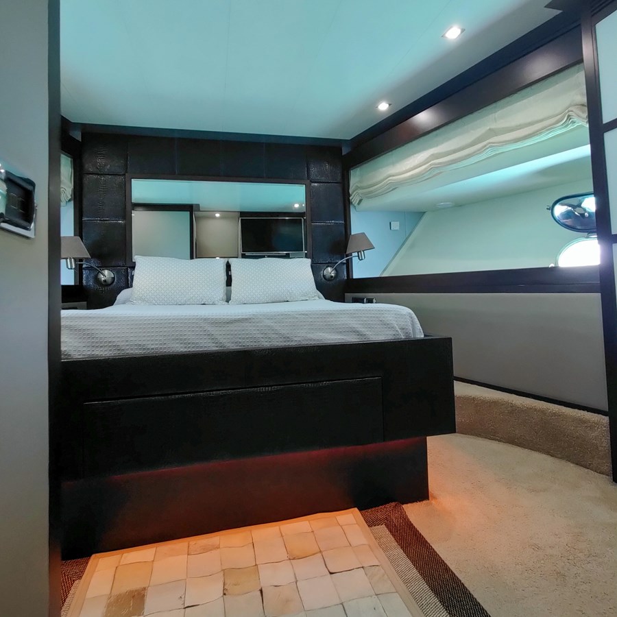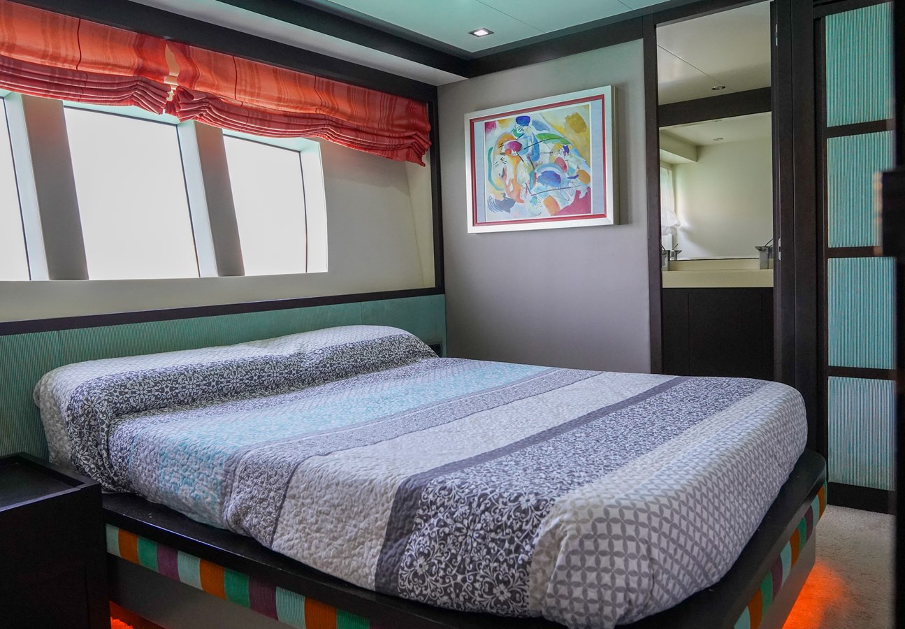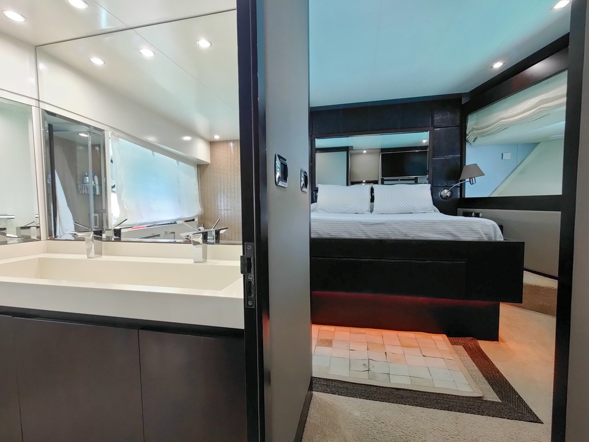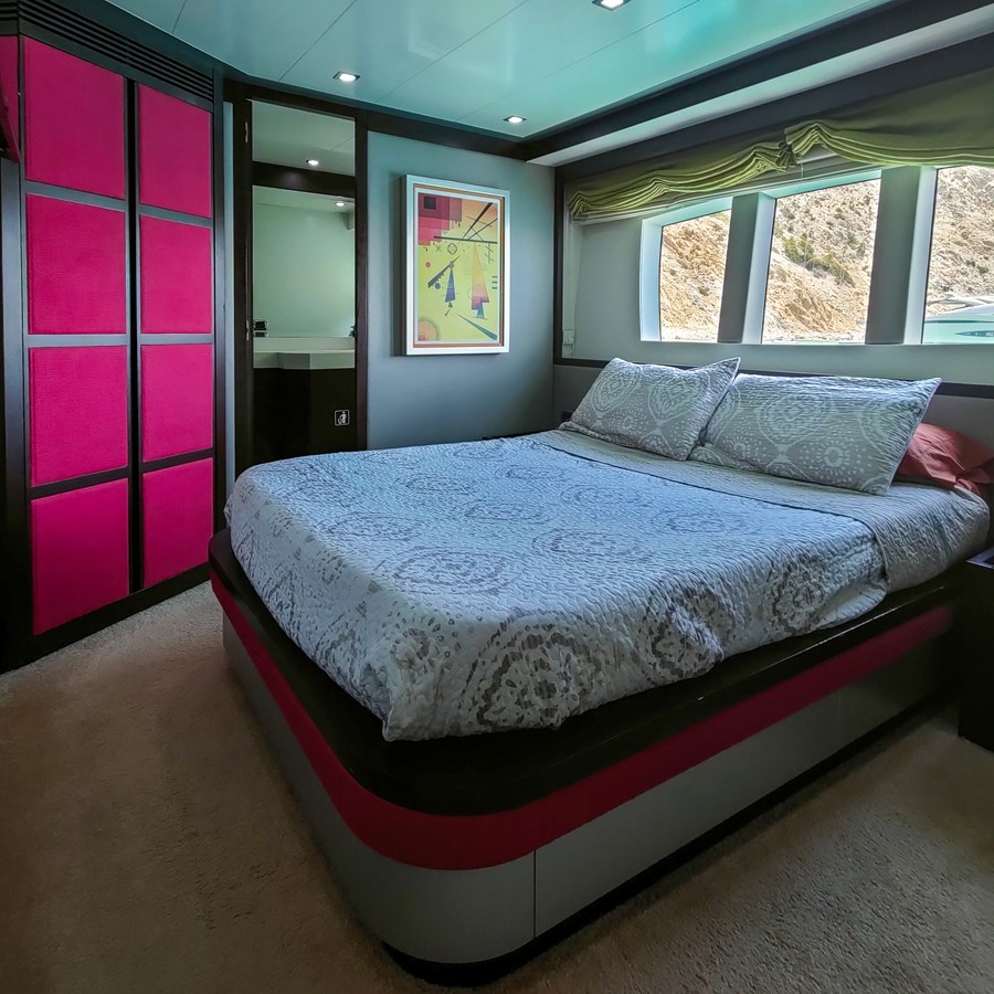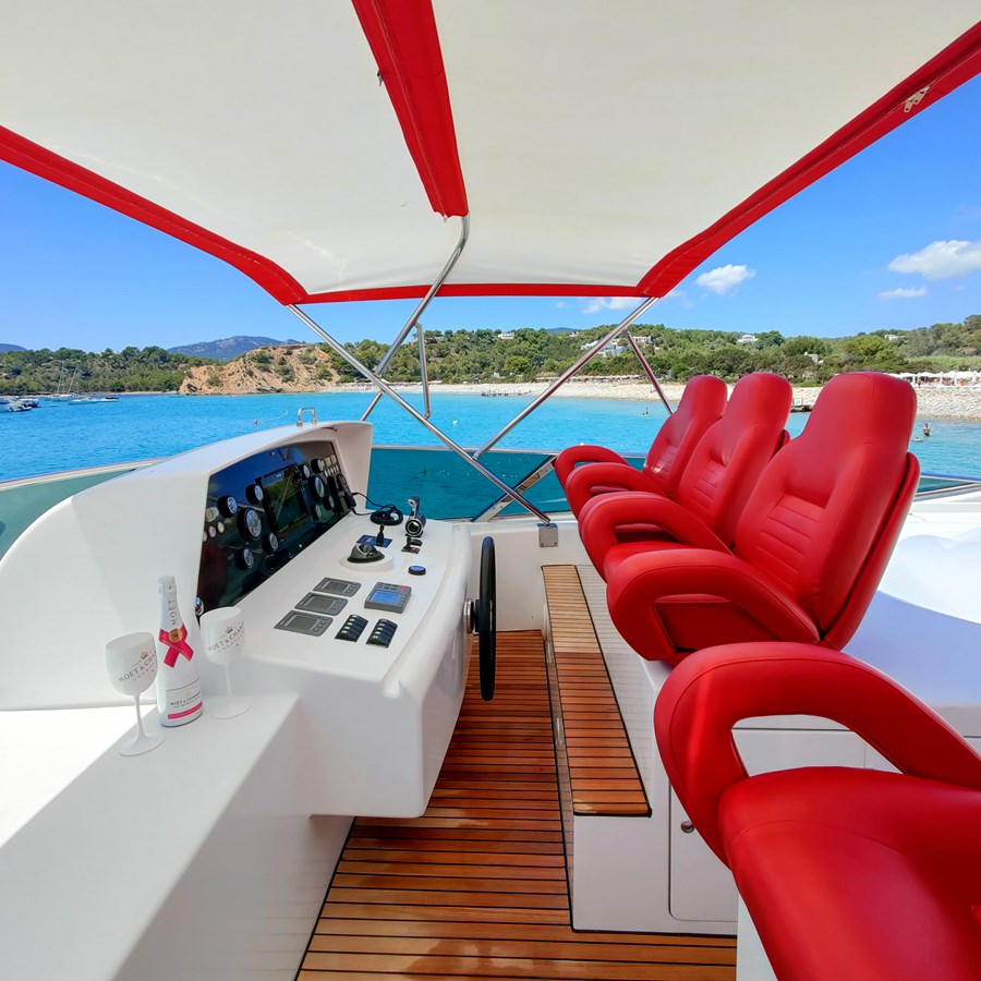 GEMINIS has plenty of exterior decks space to enjoy the warm Mediterranean climates. The aft deck is shaded and boasts an alfresco dining option and built in upholstered seating. Water enthusiasts will be able to make effortless use of the great selection of water toys (Jet Ski, SEABOB, Inflatables) from the extended swim platform. Charter yacht GEMINI is a sun worshipers paradise offering ample sunning. The foredeck has a double sunpad which is easily accessed from the wide side decks. Above, the flybridge offers plenty of further sunning on 2 sunpads, seating and deck space. Probably most importantly for many there is also a flybridge jacuzzi on the deck.
