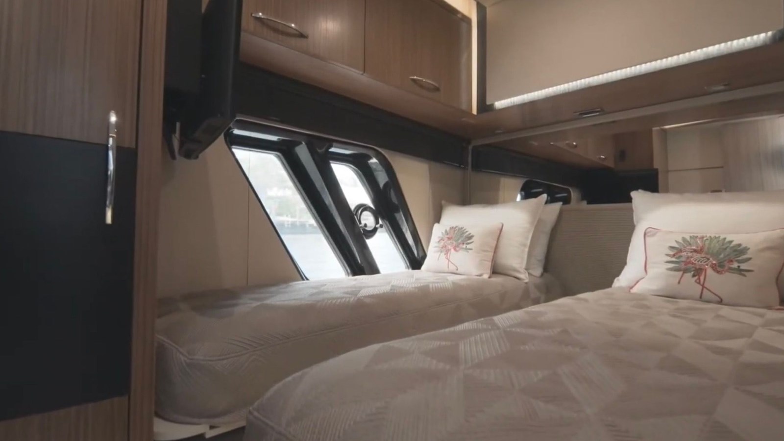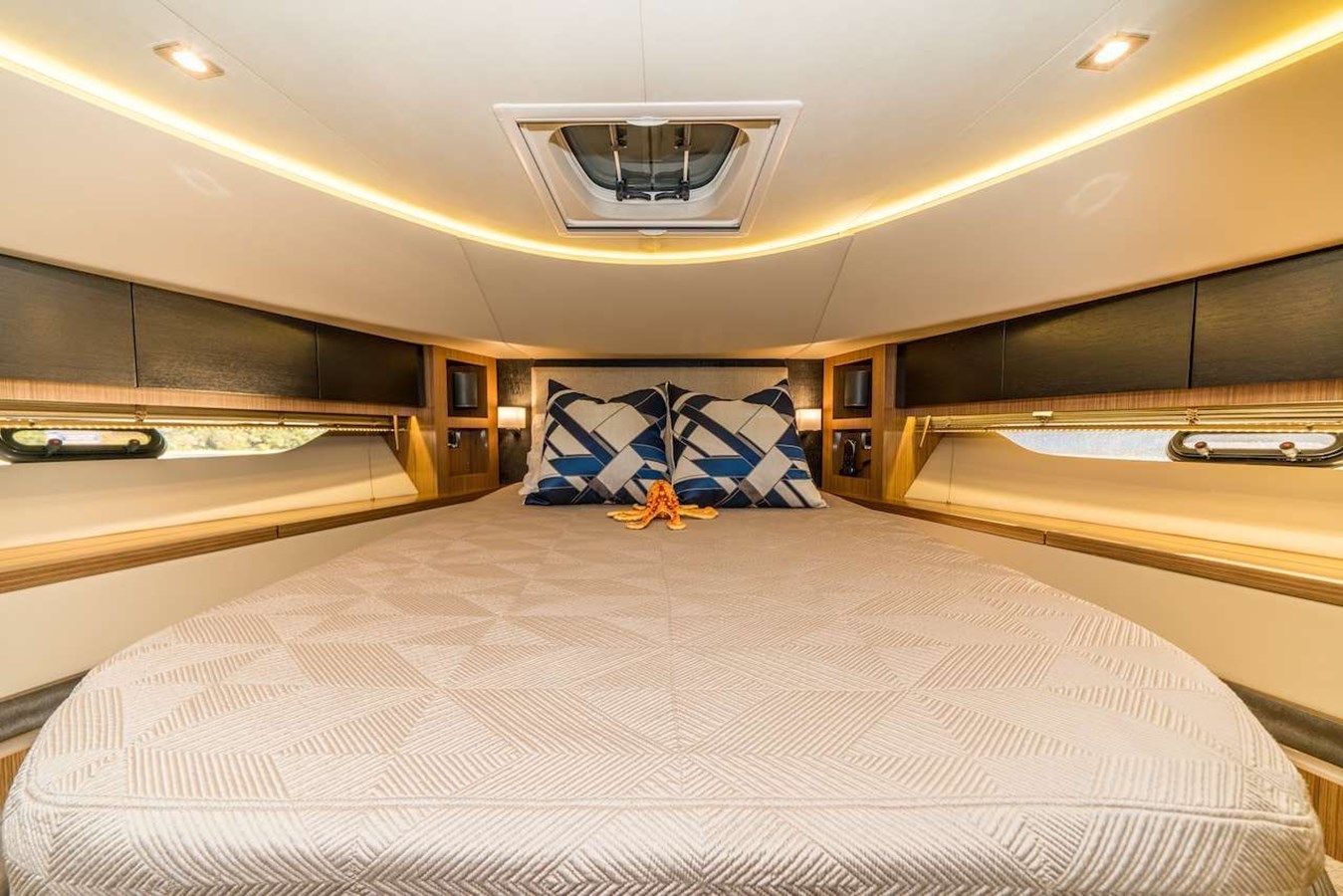 Accommodations on board include several well-appointed staterooms, each featuring en-suite bathrooms for privacy and convenience. The master suite, a retreat in itself, offers a serene escape with generous space and top-tier amenities.