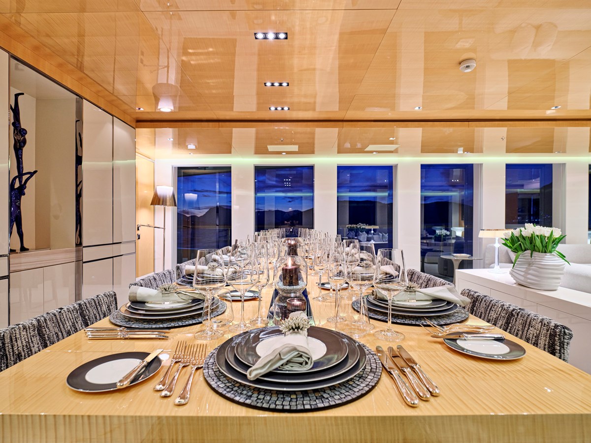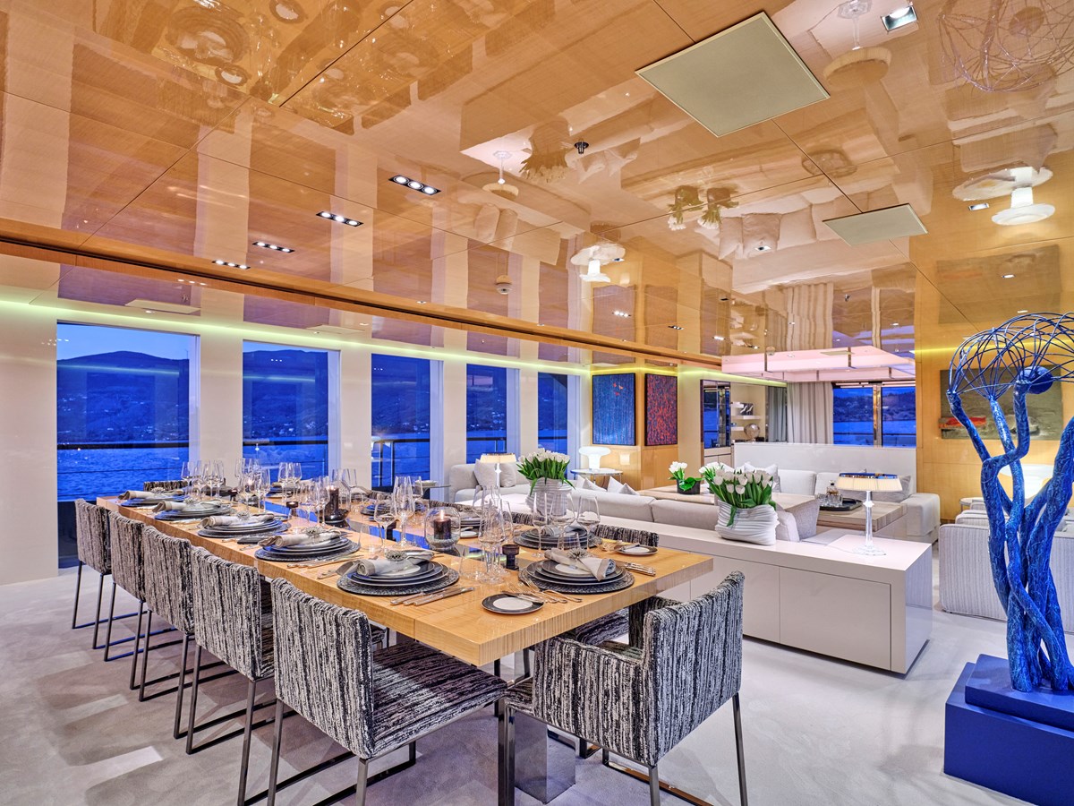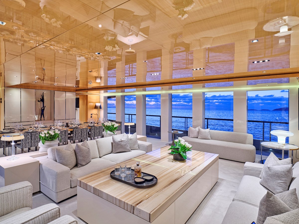 seating area and a refined dining space. The main deck VIP suite offers 1800 views,