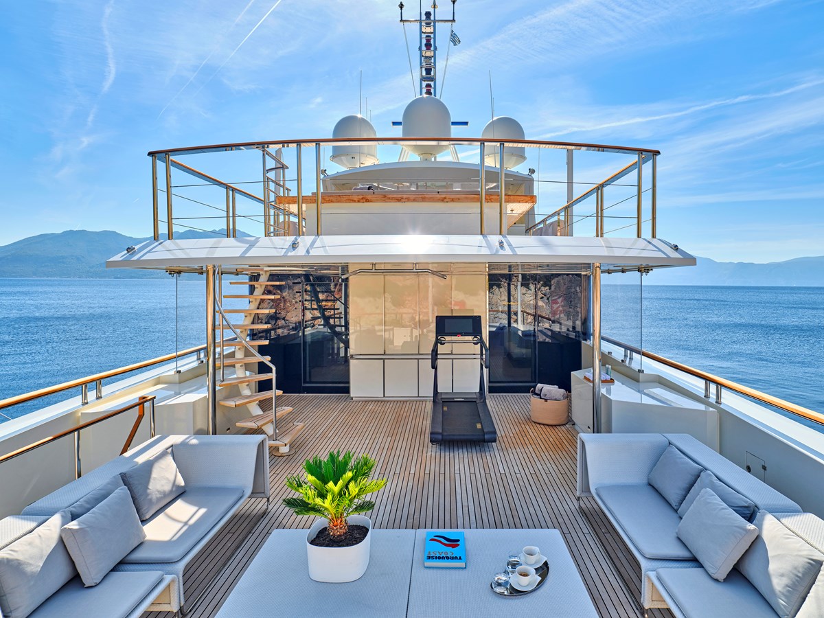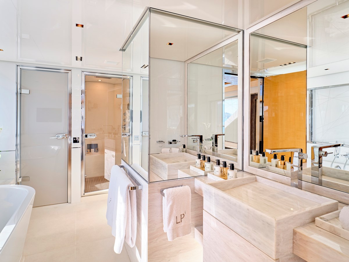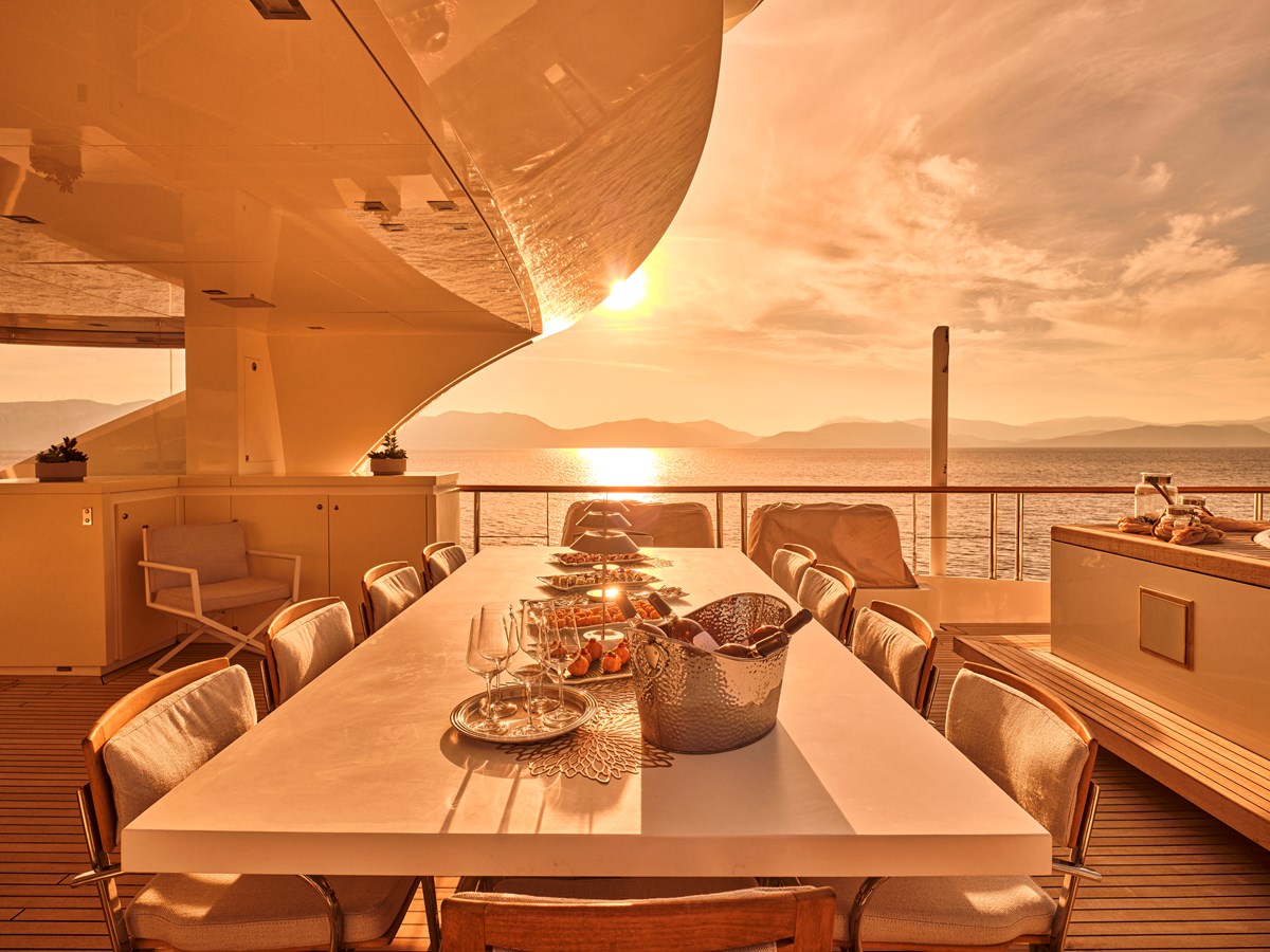 seating area and a refined dining space. The main deck VIP suite offers 1800 views,