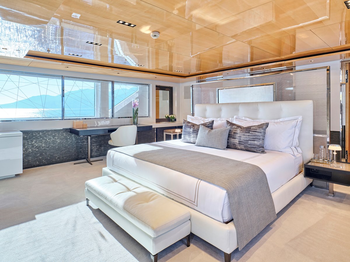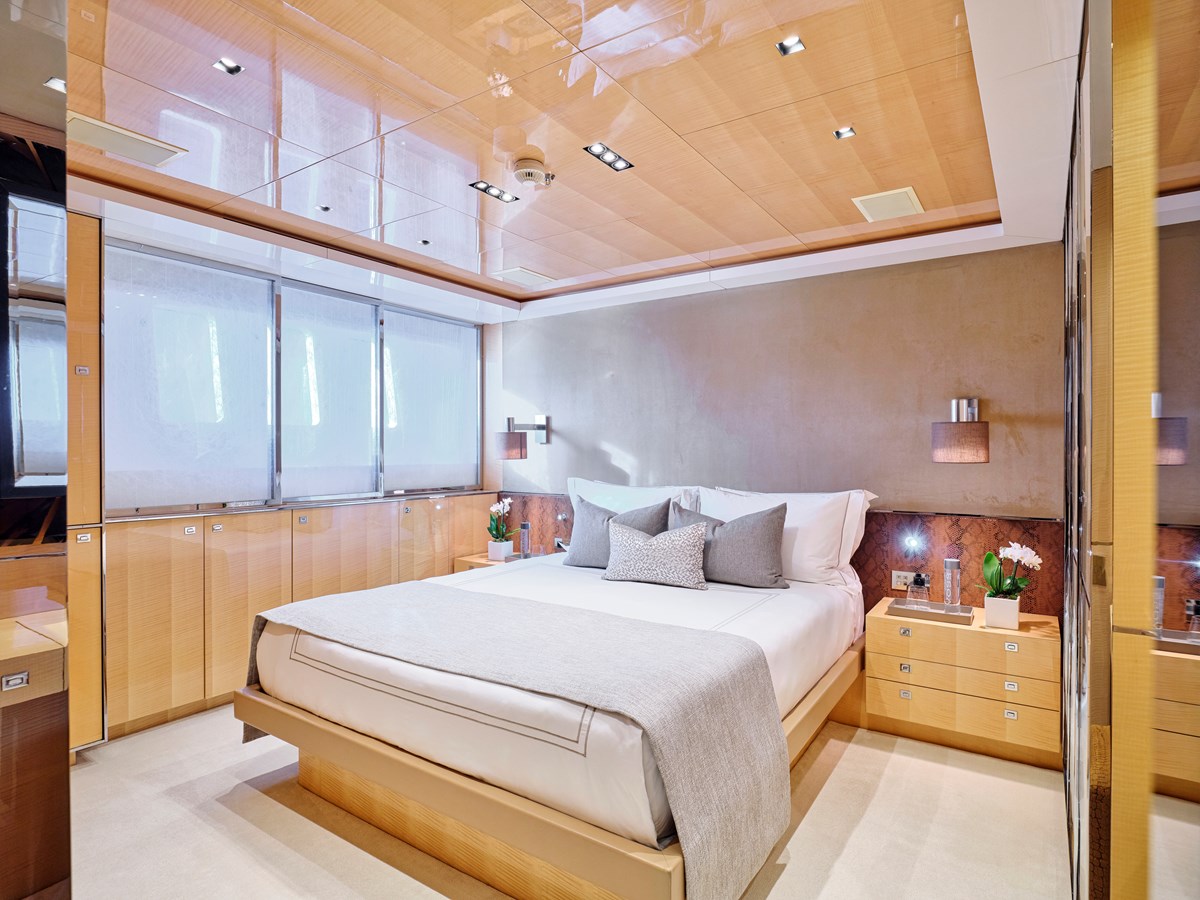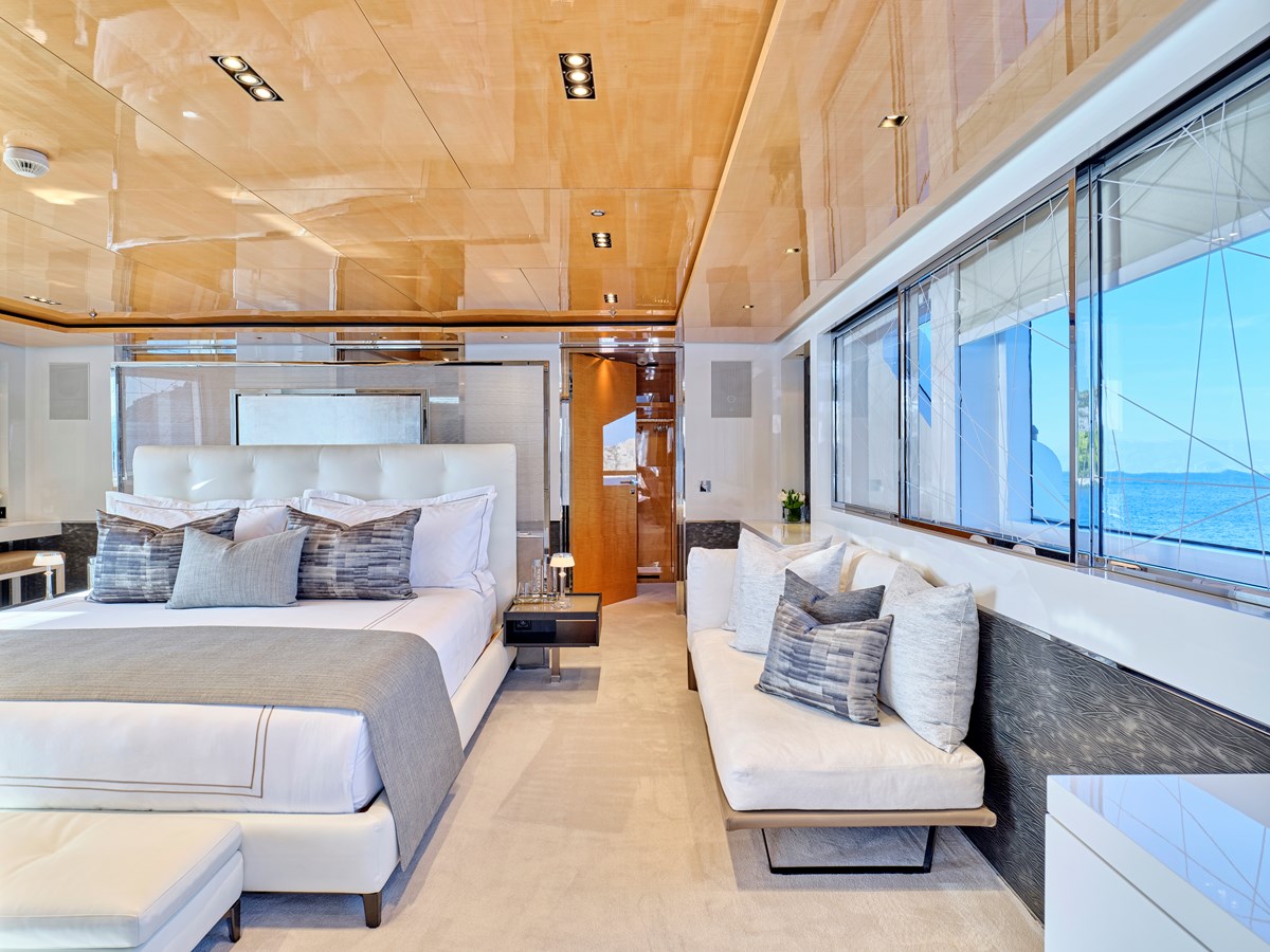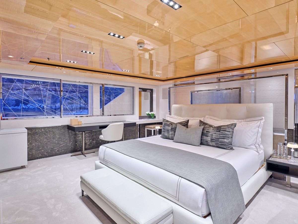 while the upper deck master suite boasts a full-beam layout and private aft deck.