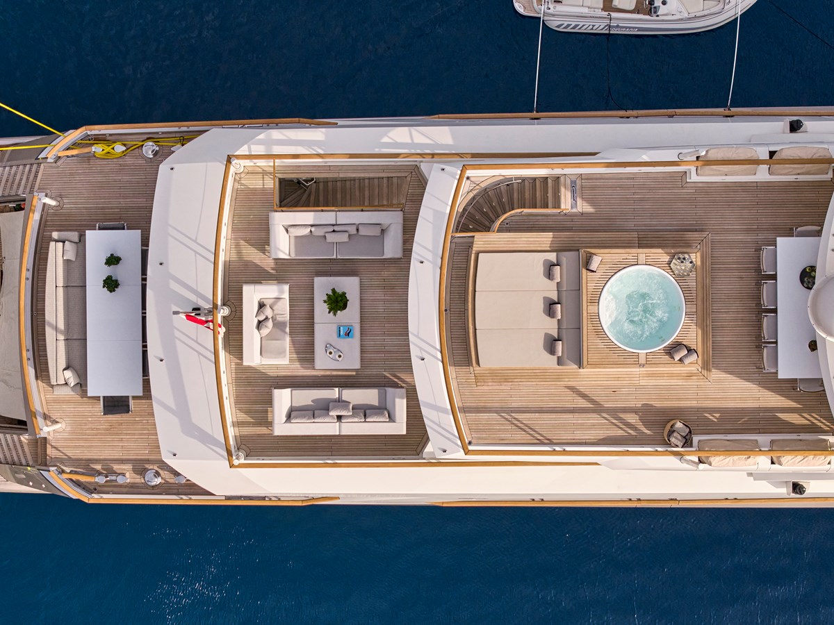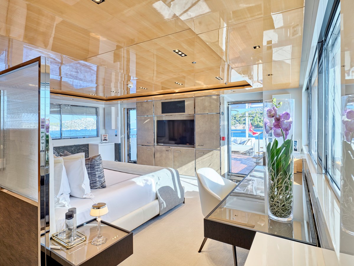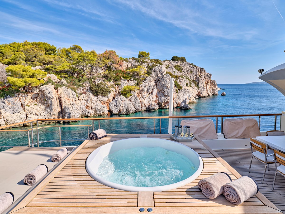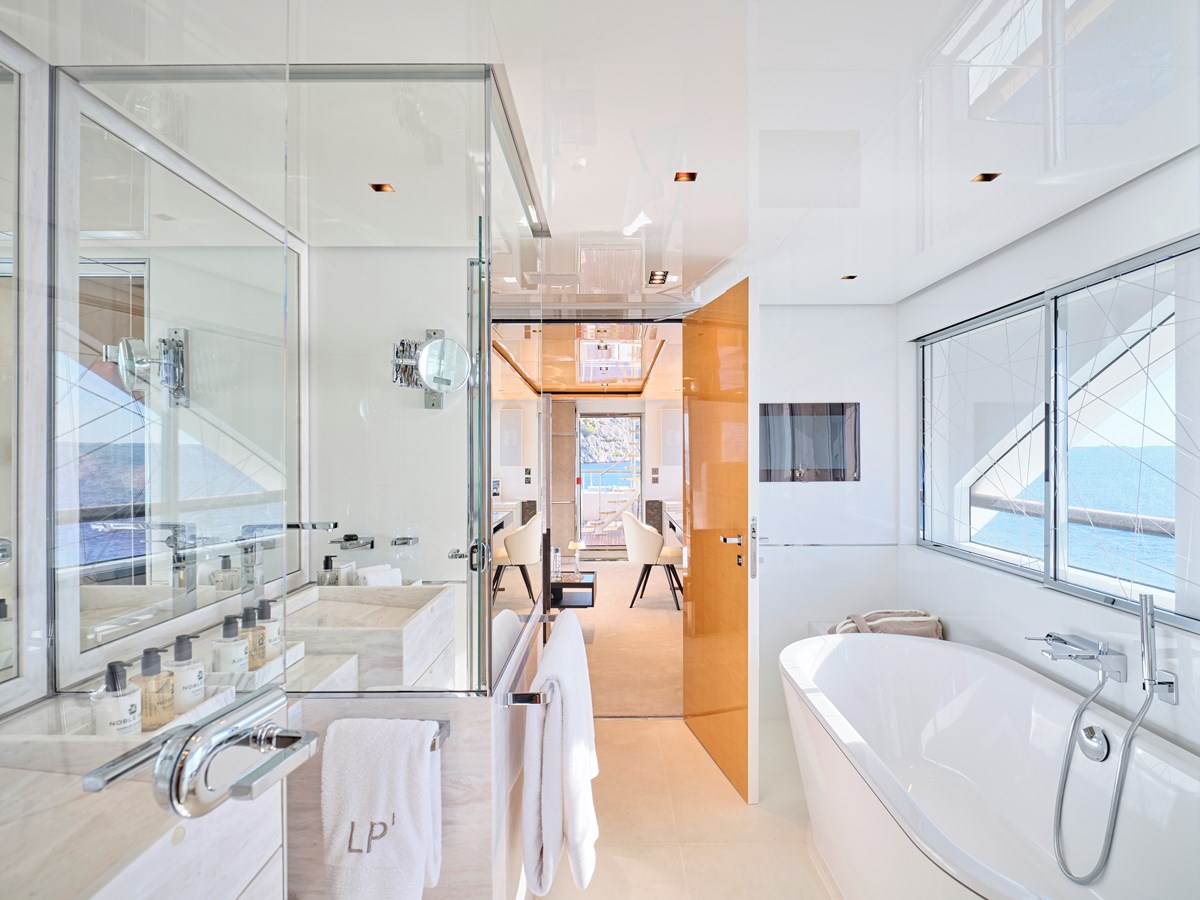 while the upper deck master suite boasts a full-beam layout and private aft deck.
