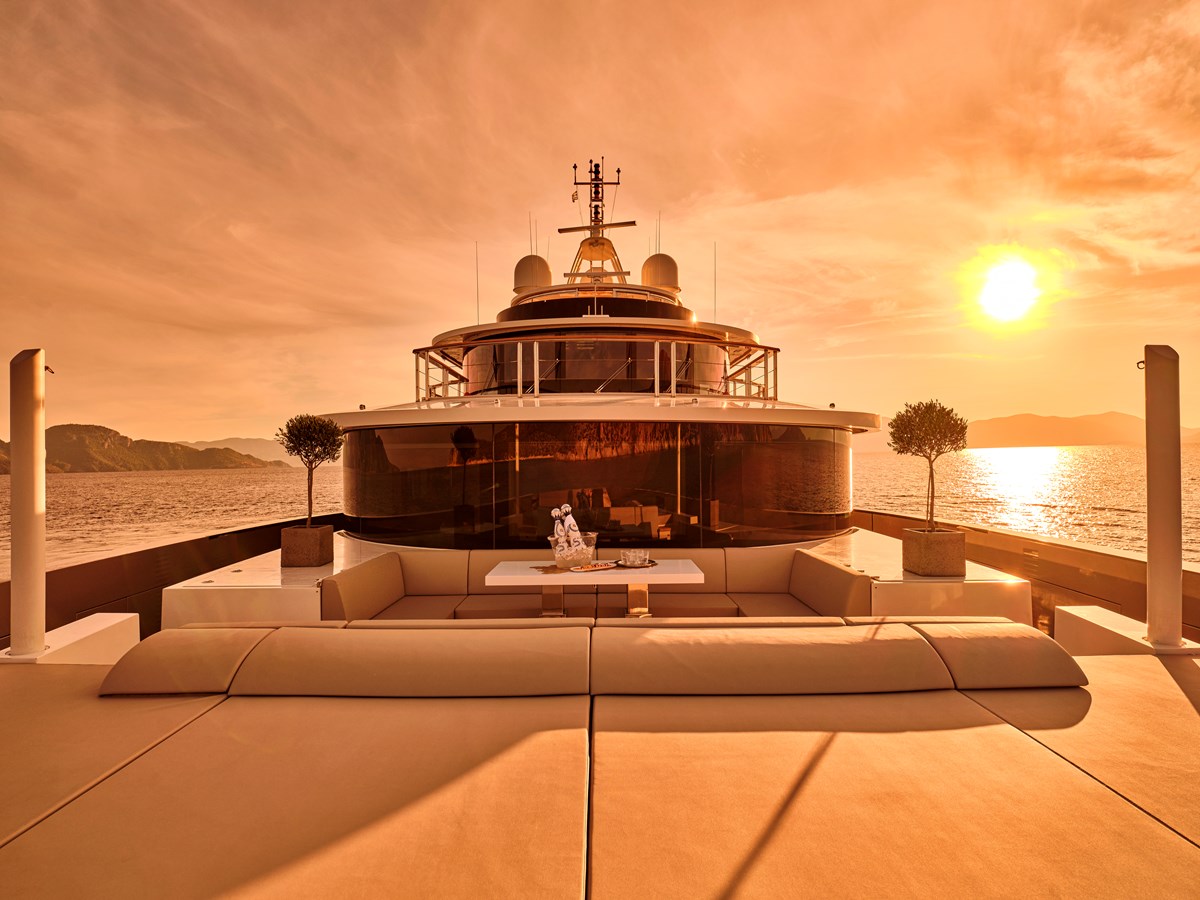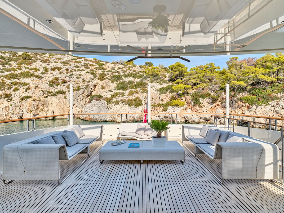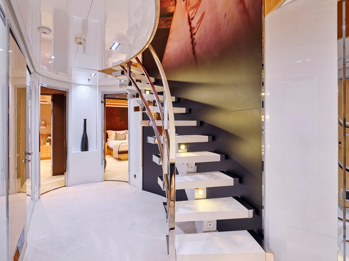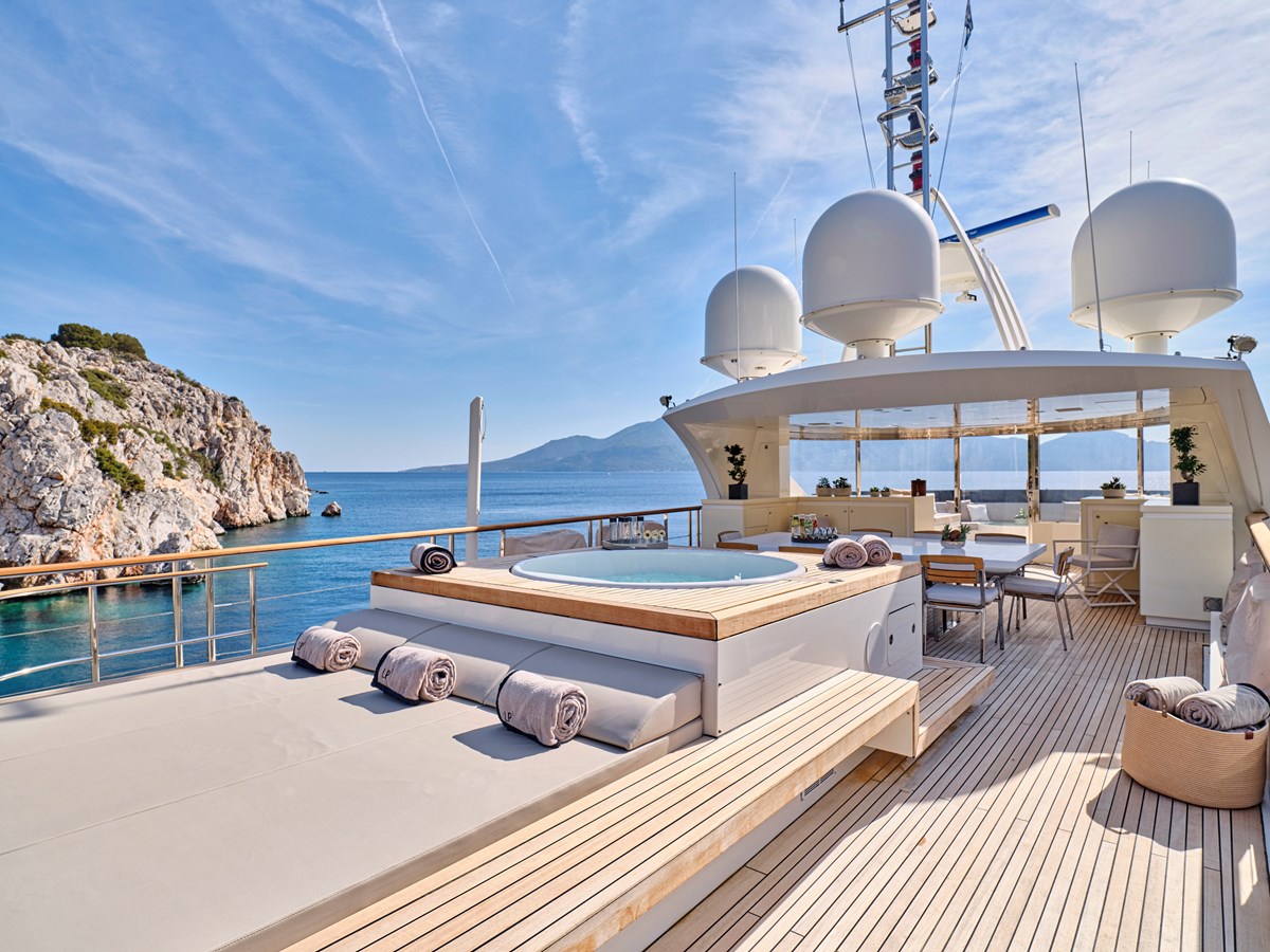 while the upper deck master suite boasts a full-beam layout and private aft deck.