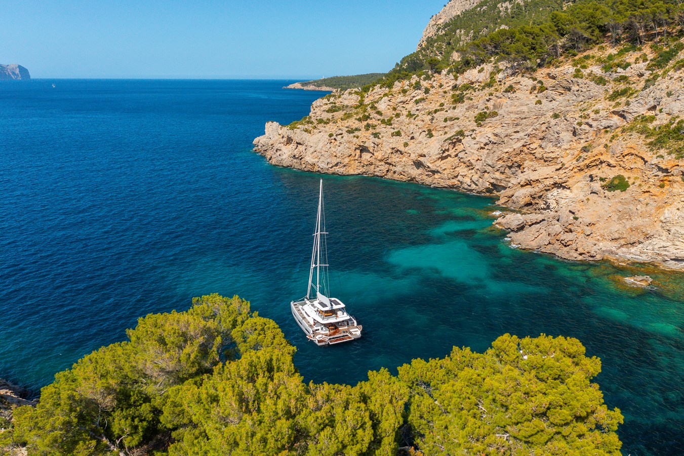 Step aboard onto the wide steps of our new launched Lagoon 60 LADY M! Achieving the perfect blend of space & intimacy, LADY M will enchant you and inspire sailing experiences that bring friends & family together for unforgettable moments. Her inviting aft cockpit instantly reveals its full potential as well as her flybridge excites with her breathtaking dimensions, the largest in her category. Her four inviting staterooms benefit from abundant natural lighting offering the ultimate relaxation. Life on board has never been so promising!
