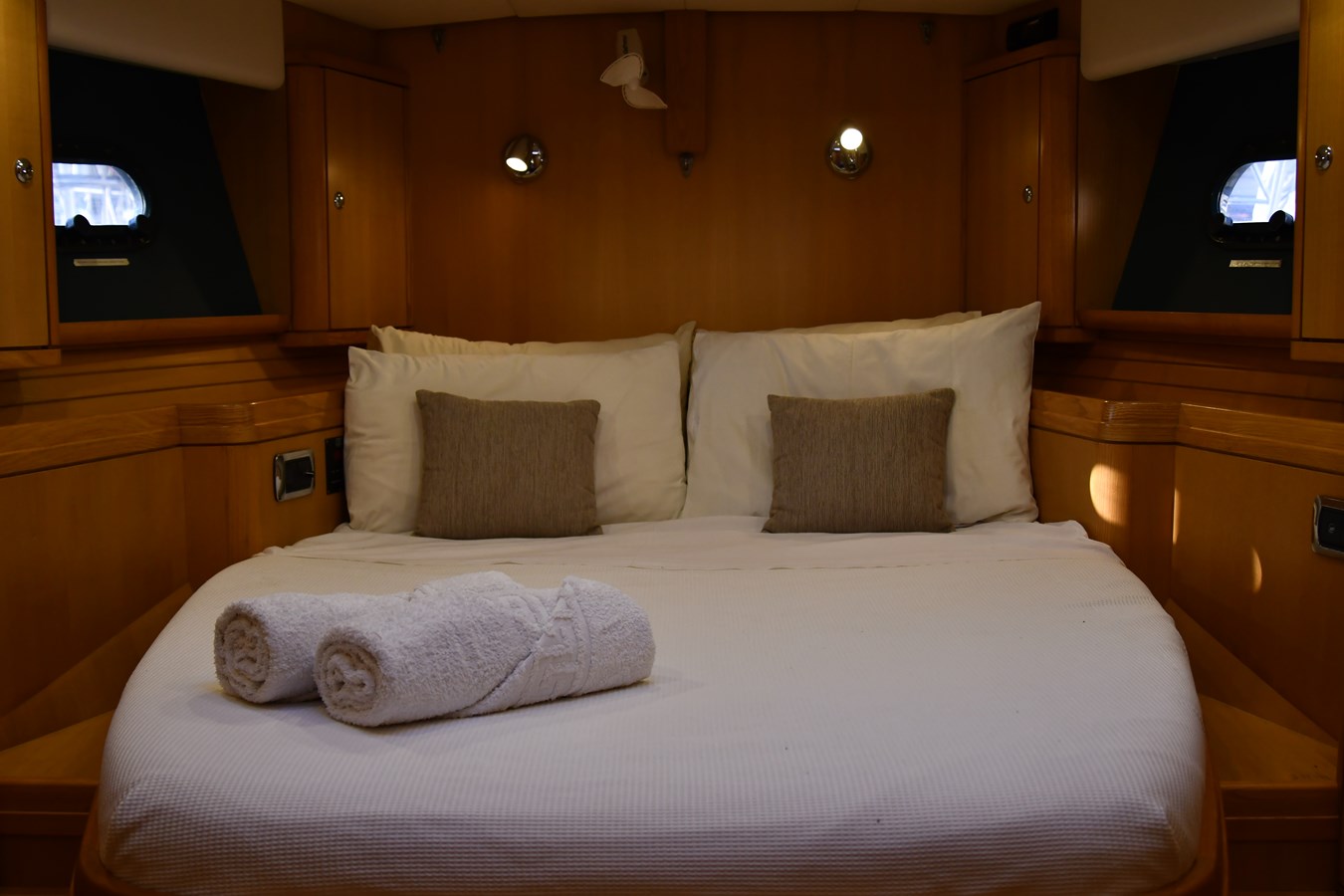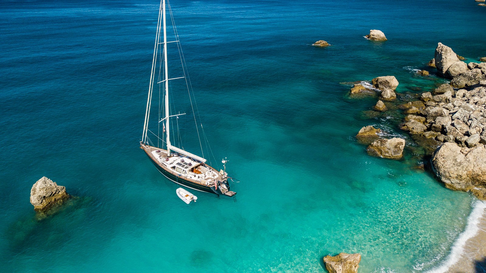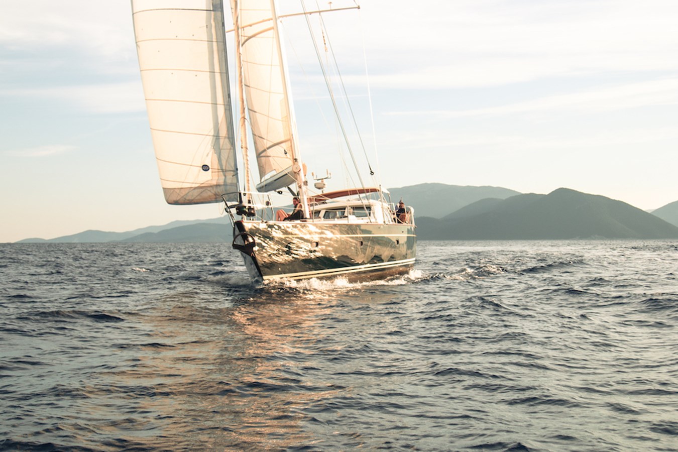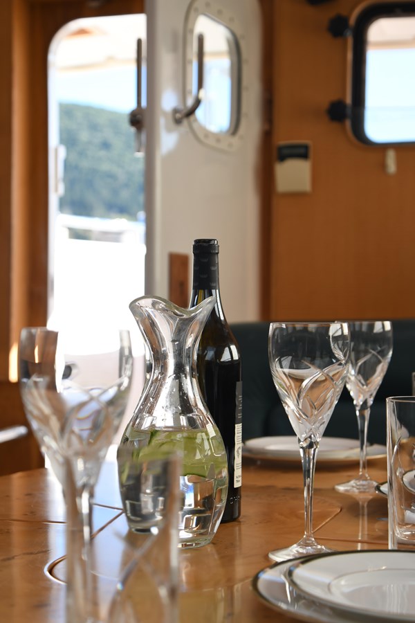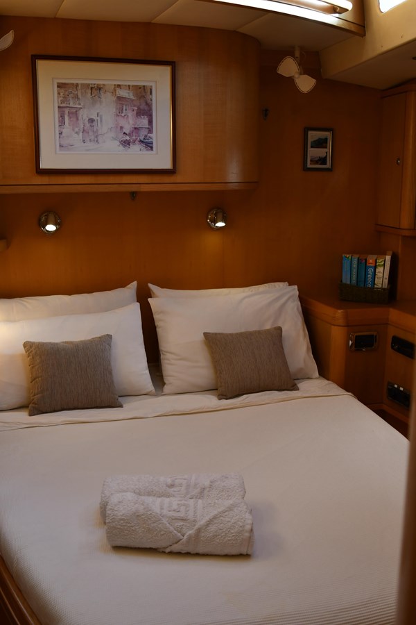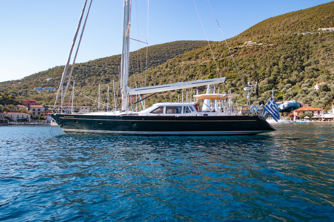 A celebration of many years of boat ownership, Morning Calm was conceived and built for family cruising in comfort and style. Her composite construction allows weight to be in all the right places, especially the retracting keel which enables access to secluded anchorages. When the keel is in sailing mode, an enormous three and a half meter draught promotes a performance not usually associated with an expedition Yacht of this size. A rope free cockpit means no riveting book has to be interrupted as Morning Calm makes her way toward the next adventure, her all electric control systems allow everyone to be involved.Whilst on deck is all about short handed performance sailing, her accommodation is definitely modern classic luxury. The panoramic pilot house keeps you part of the journey in a soothing comfortable environment. Staterooms with walk around beds and generous ensuite facilities really show this boat’s origins as a place for all of the family to be comfortable whether at sea or moored for the night.All this performance and luxury of course needs a crew to keep running smoothly, on Morning Calm, Galley, crew cabin and the machinery room are all aft of the pilot house, creating the perfect dynamic for everyday living onboard. Meals can be served either in the walnut and leather saloon or in the comfortable cockpit which lends itself to waterside dining perfection.The powerful tender doubles both as a taxi to get ashore or an exploration vehicle to check out the places where even Morning Calm cannot reach and the garage full of water toys means that everyone has a ‘must try experience’ during periods at anchor.
