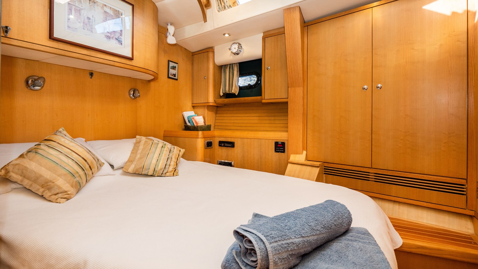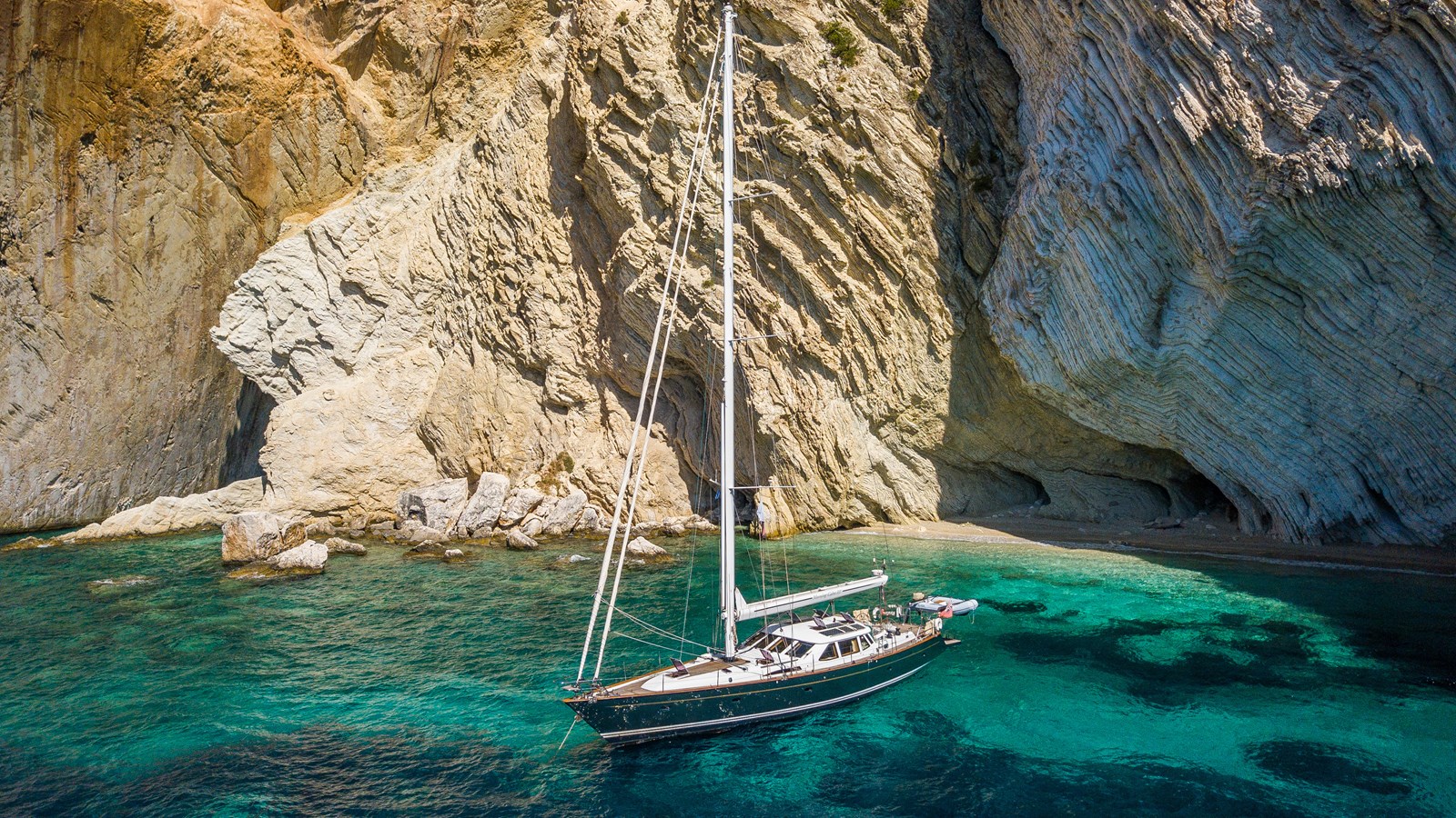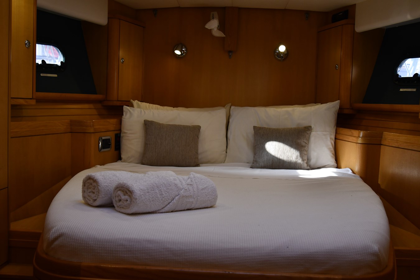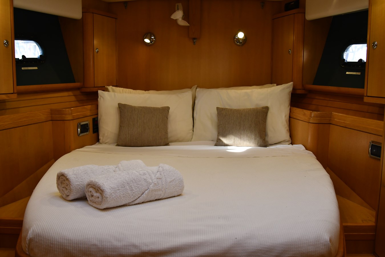 A celebration of many years of boat ownership, Morning Calm was conceived and built for family cruising in comfort and style. Her composite construction allows weight to be in all the right places, especially the retracting keel which enables access to secluded anchorages. When the keel is in sailing mode, an enormous three and a half meter draught promotes a performance not usually associated with an expedition Yacht of this size. A rope free cockpit means no riveting book has to be interrupted as Morning Calm makes her way toward the next adventure, her all electric control systems allow everyone to be involved.Whilst on deck is all about short handed performance sailing, her accommodation is definitely modern classic luxury. The panoramic pilot house keeps you part of the journey in a soothing comfortable environment. Staterooms with walk around beds and generous ensuite facilities really show this boat’s origins as a place for all of the family to be comfortable whether at sea or moored for the night.All this performance and luxury of course needs a crew to keep running smoothly, on Morning Calm, Galley, crew cabin and the machinery room are all aft of the pilot house, creating the perfect dynamic for everyday living onboard. Meals can be served either in the walnut and leather saloon or in the comfortable cockpit which lends itself to waterside dining perfection.The powerful tender doubles both as a taxi to get ashore or an exploration vehicle to check out the places where even Morning Calm cannot reach and the garage full of water toys means that everyone has a ‘must try experience’ during periods at anchor.
