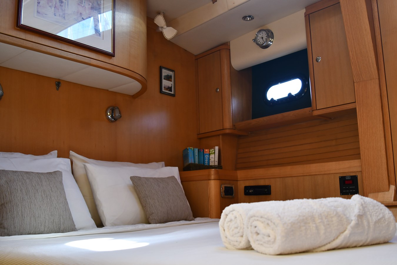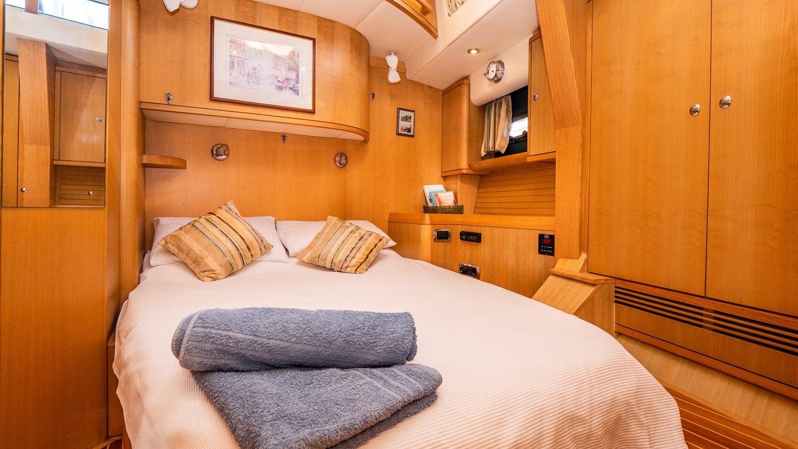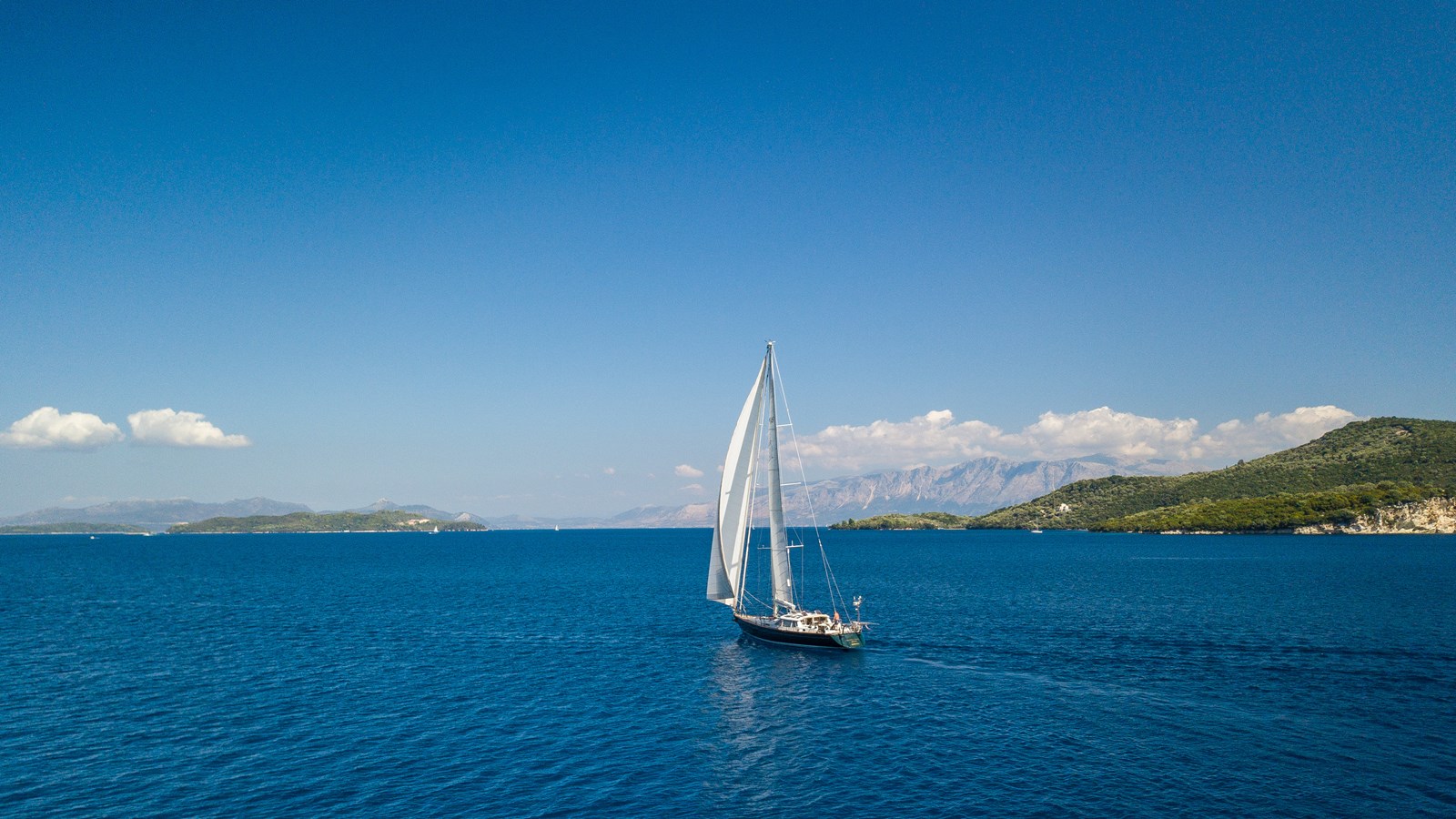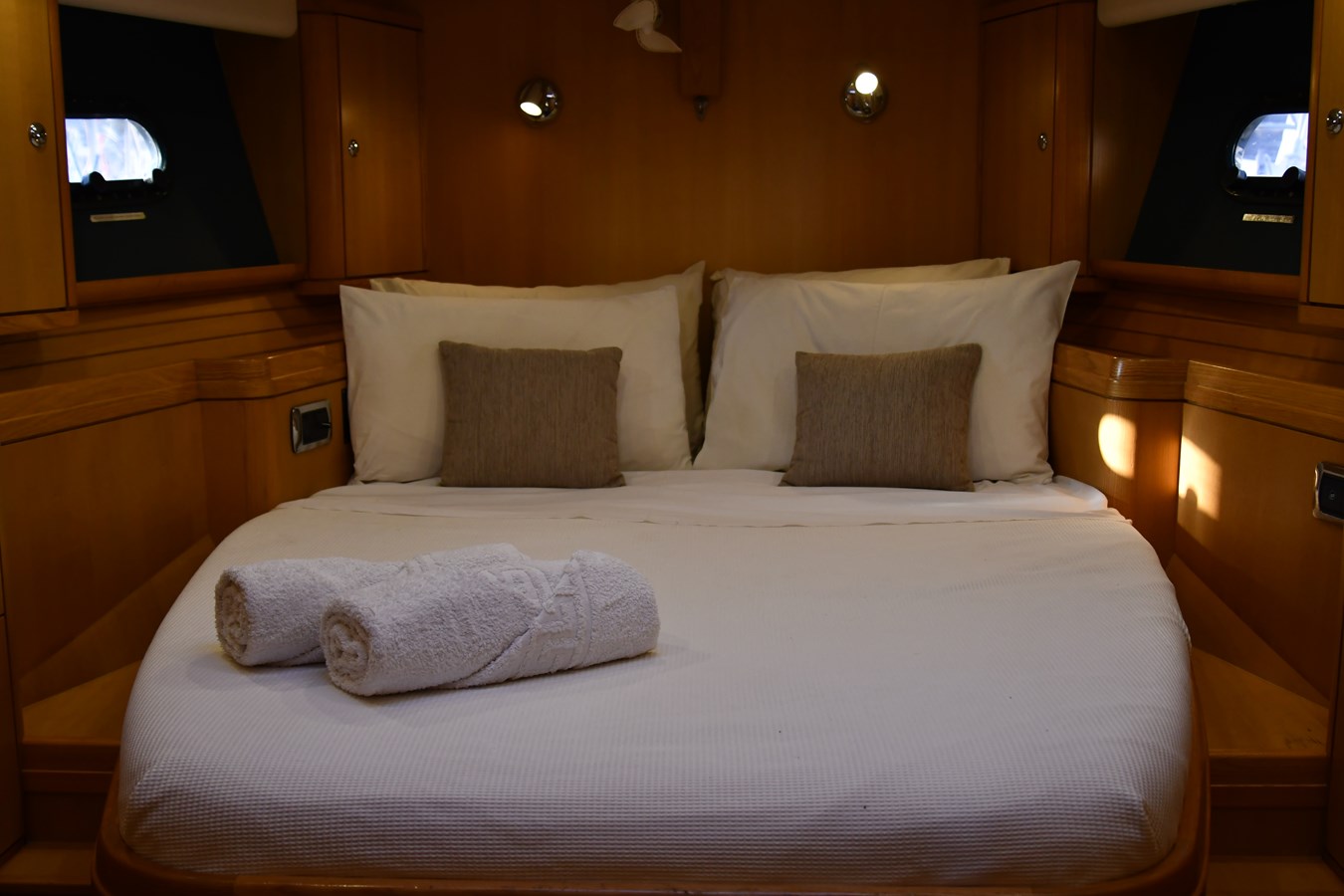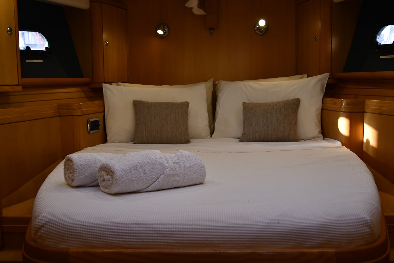 A celebration of many years of boat ownership, Morning Calm was conceived and built for family cruising in comfort and style. Her composite construction allows weight to be in all the right places, especially the retracting keel which enables access to secluded anchorages. When the keel is in sailing mode, an enormous three and a half meter draught promotes a performance not usually associated with an expedition Yacht of this size. A rope free cockpit means no riveting book has to be interrupted as Morning Calm makes her way toward the next adventure, her all electric control systems allow everyone to be involved.Whilst on deck is all about short handed performance sailing, her accommodation is definitely modern classic luxury. The panoramic pilot house keeps you part of the journey in a soothing comfortable environment. Staterooms with walk around beds and generous ensuite facilities really show this boat’s origins as a place for all of the family to be comfortable whether at sea or moored for the night.All this performance and luxury of course needs a crew to keep running smoothly, on Morning Calm, Galley, crew cabin and the machinery room are all aft of the pilot house, creating the perfect dynamic for everyday living onboard. Meals can be served either in the walnut and leather saloon or in the comfortable cockpit which lends itself to waterside dining perfection.The powerful tender doubles both as a taxi to get ashore or an exploration vehicle to check out the places where even Morning Calm cannot reach and the garage full of water toys means that everyone has a ‘must try experience’ during periods at anchor.