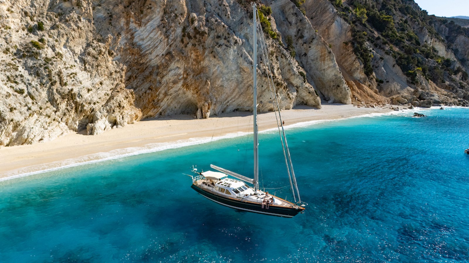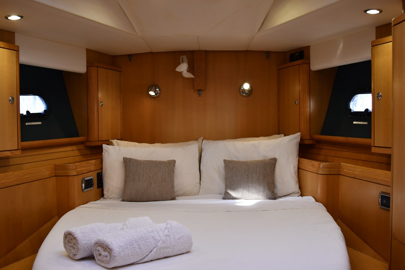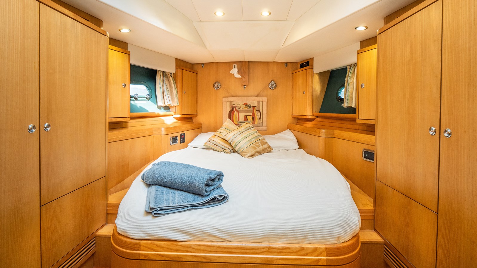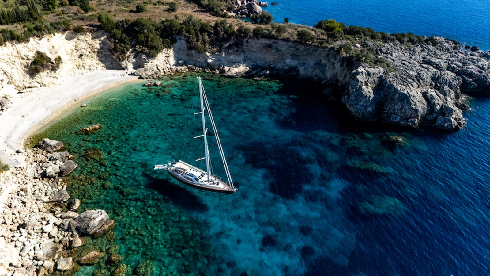 A celebration of many years of boat ownership, Morning Calm was conceived and built for family cruising in comfort and style. Her composite construction allows weight to be in all the right places, especially the retracting keel which enables access to secluded anchorages. When the keel is in sailing mode, an enormous three and a half meter draught promotes a performance not usually associated with an expedition Yacht of this size. A rope free cockpit means no riveting book has to be interrupted as Morning Calm makes her way toward the next adventure, her all electric control systems allow everyone to be involved.Whilst on deck is all about short handed performance sailing, her accommodation is definitely modern classic luxury. The panoramic pilot house keeps you part of the journey in a soothing comfortable environment. Staterooms with walk around beds and generous ensuite facilities really show this boat’s origins as a place for all of the family to be comfortable whether at sea or moored for the night.All this performance and luxury of course needs a crew to keep running smoothly, on Morning Calm, Galley, crew cabin and the machinery room are all aft of the pilot house, creating the perfect dynamic for everyday living onboard. Meals can be served either in the walnut and leather saloon or in the comfortable cockpit which lends itself to waterside dining perfection.The powerful tender doubles both as a taxi to get ashore or an exploration vehicle to check out the places where even Morning Calm cannot reach and the garage full of water toys means that everyone has a ‘must try experience’ during periods at anchor.