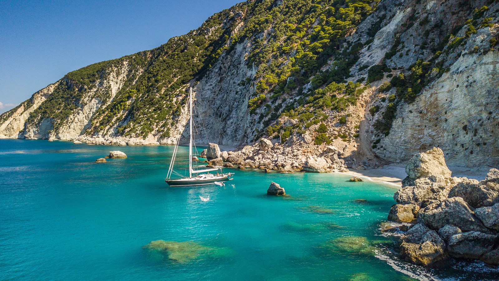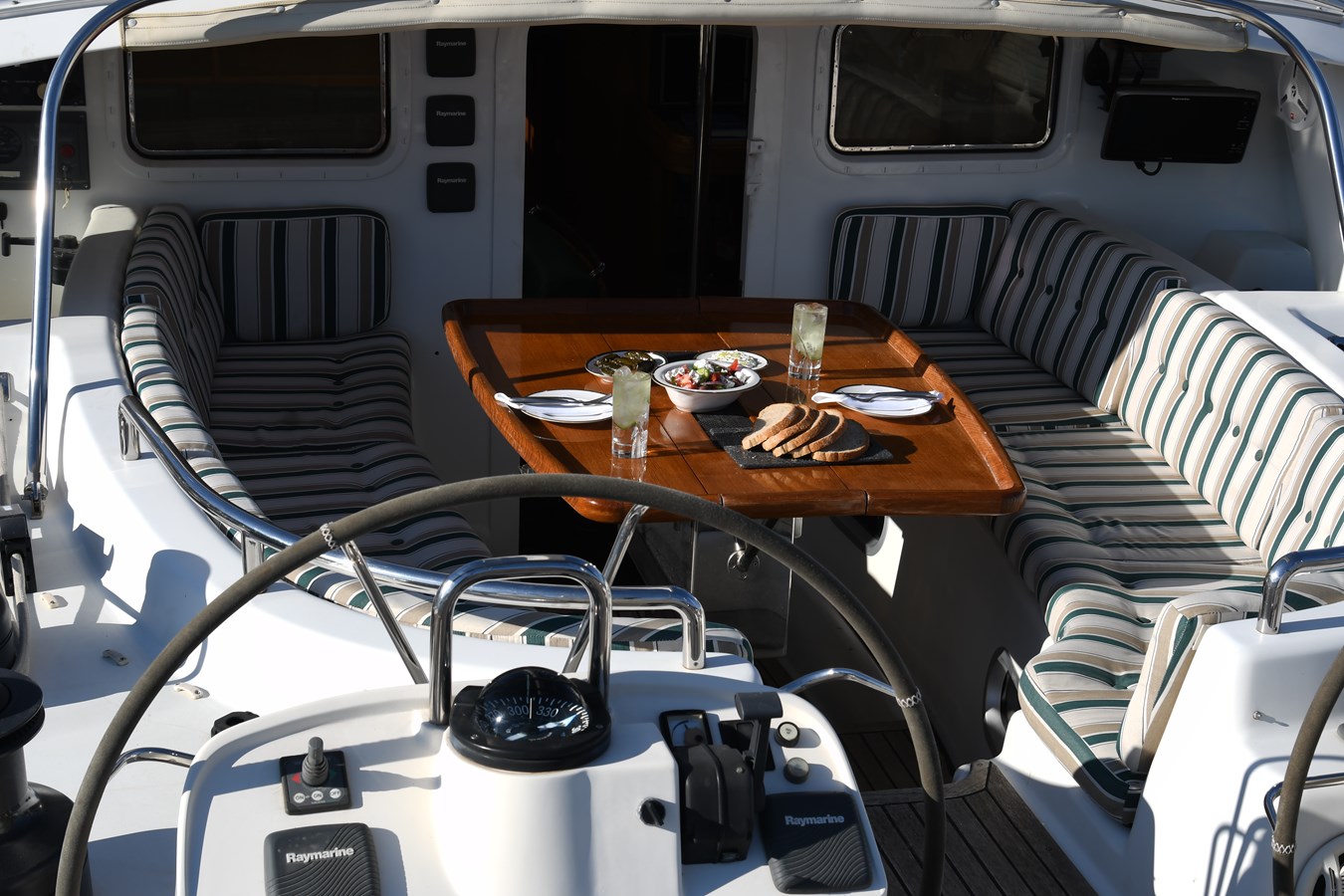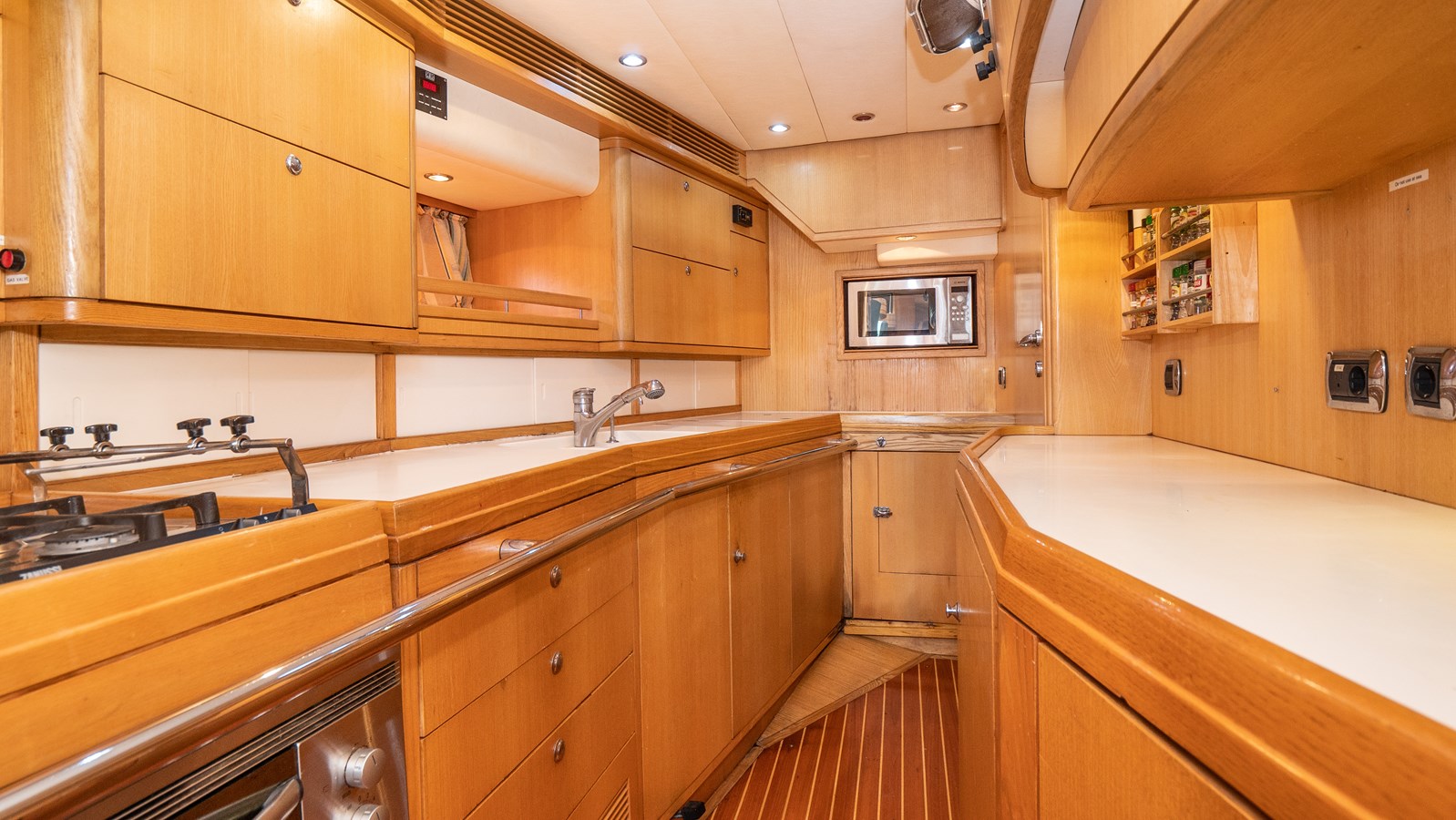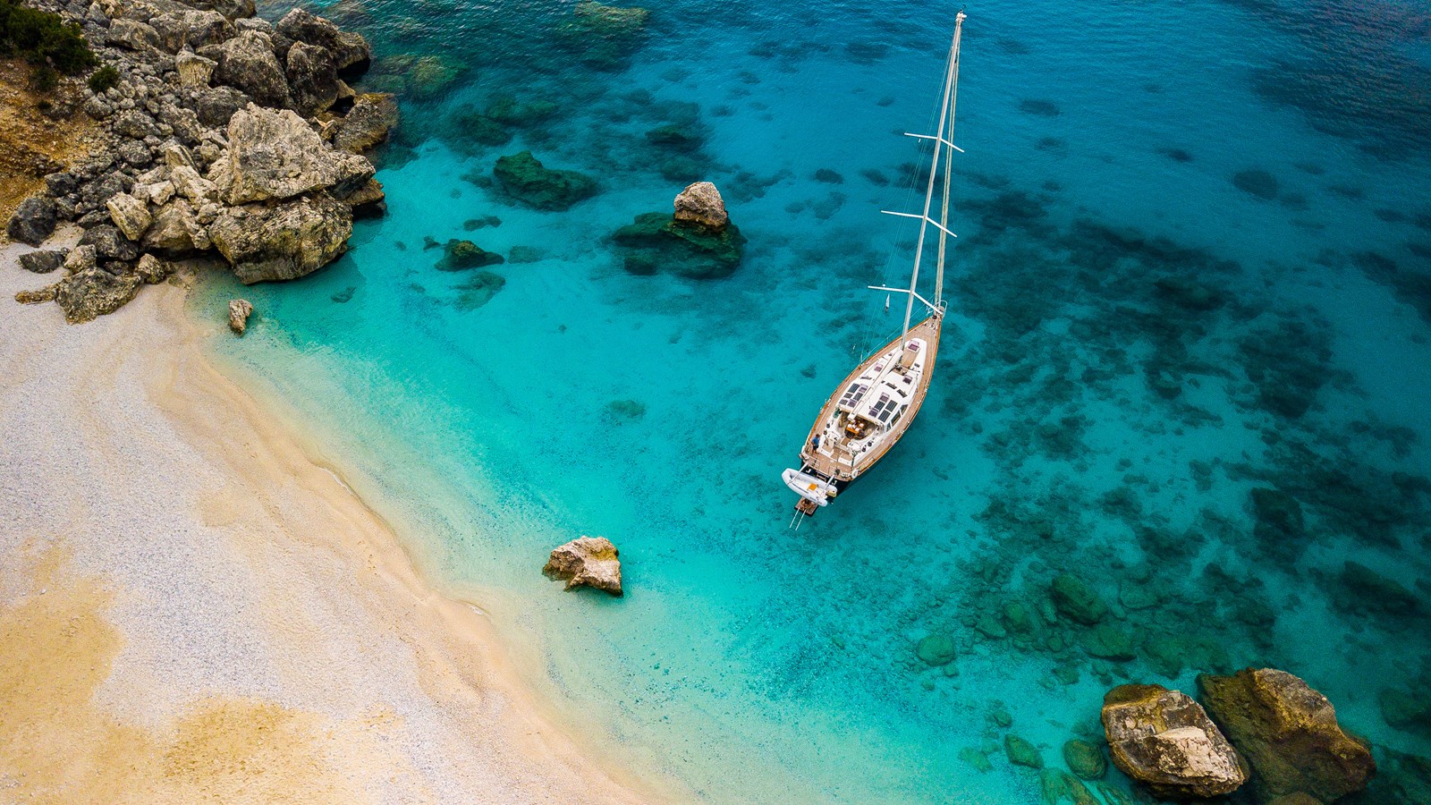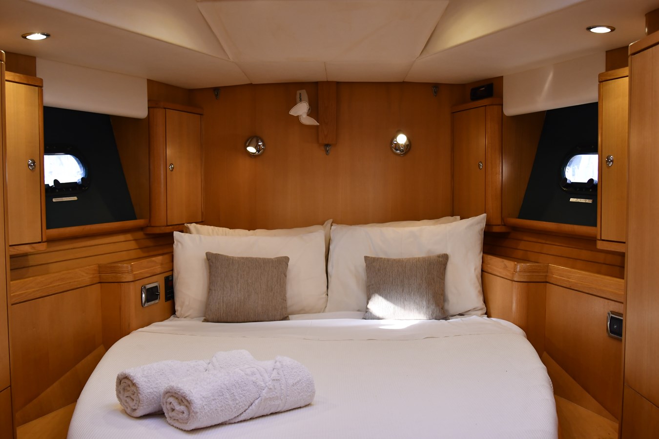 A celebration of many years of boat ownership, Morning Calm was conceived and built for family cruising in comfort and style. Her composite construction allows weight to be in all the right places, especially the retracting keel which enables access to secluded anchorages. When the keel is in sailing mode, an enormous three and a half meter draught promotes a performance not usually associated with an expedition Yacht of this size. A rope free cockpit means no riveting book has to be interrupted as Morning Calm makes her way toward the next adventure, her all electric control systems allow everyone to be involved.Whilst on deck is all about short handed performance sailing, her accommodation is definitely modern classic luxury. The panoramic pilot house keeps you part of the journey in a soothing comfortable environment. Staterooms with walk around beds and generous ensuite facilities really show this boat’s origins as a place for all of the family to be comfortable whether at sea or moored for the night.All this performance and luxury of course needs a crew to keep running smoothly, on Morning Calm, Galley, crew cabin and the machinery room are all aft of the pilot house, creating the perfect dynamic for everyday living onboard. Meals can be served either in the walnut and leather saloon or in the comfortable cockpit which lends itself to waterside dining perfection.The powerful tender doubles both as a taxi to get ashore or an exploration vehicle to check out the places where even Morning Calm cannot reach and the garage full of water toys means that everyone has a ‘must try experience’ during periods at anchor.