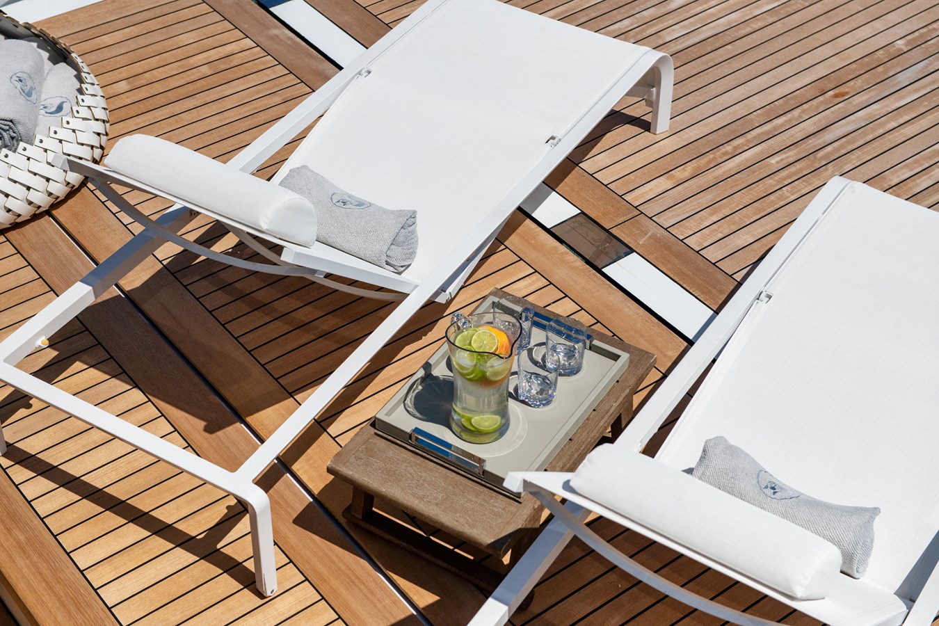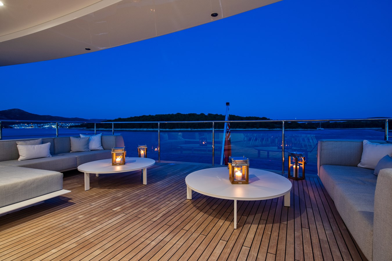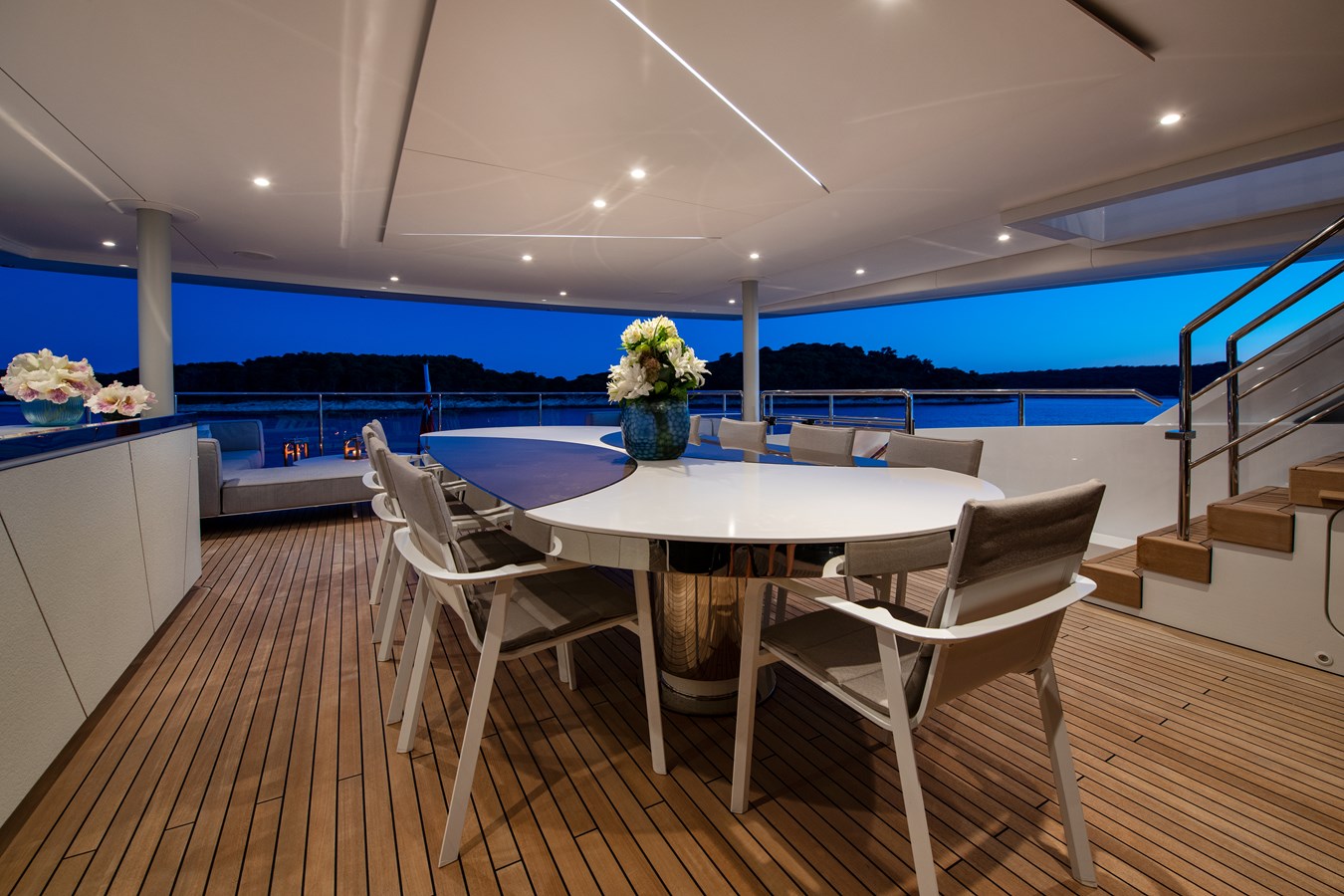 The exterior spaces are where MY MAYVA truly sets herself apart. Her expansive 140 sqm sun deck—the largest in her class—offers remarkable versatility. Modular furniture can be easily rearranged for sunrise yoga, social events, or even an open dance floor, while the infinity pool serves as a spectacular centerpiece.
