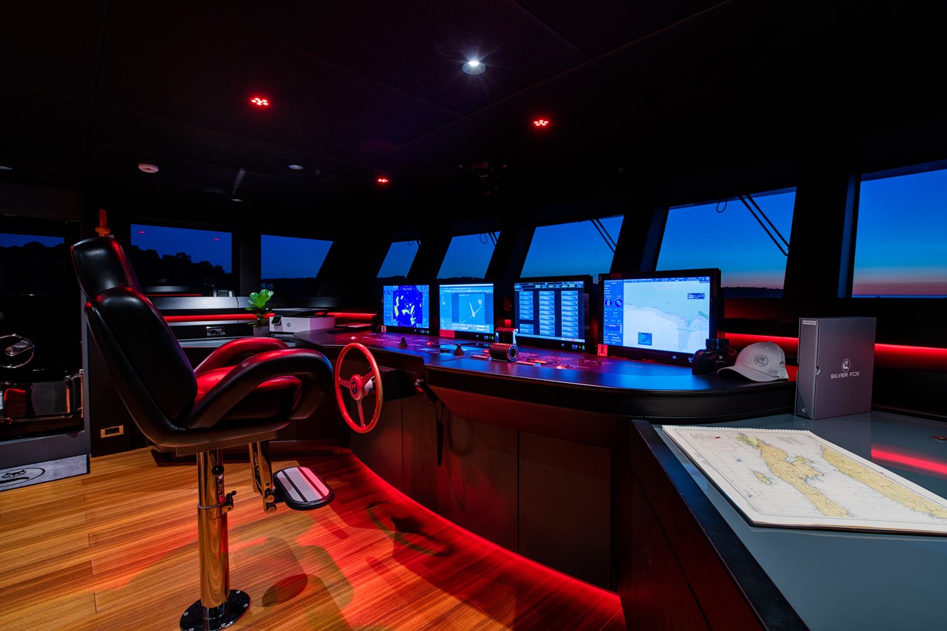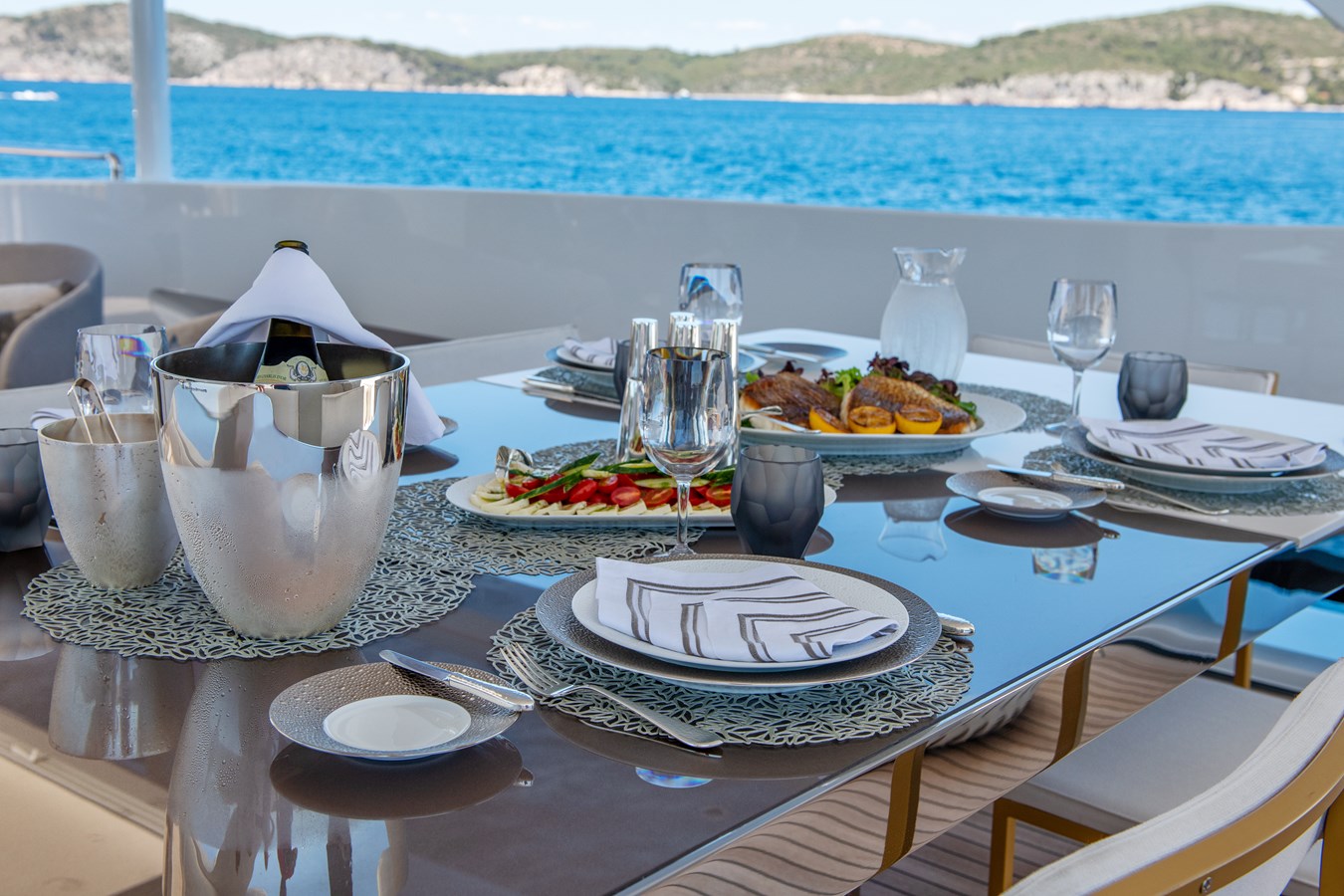 SILVER FOX’s interiors feature extensive use of glass, including striking floor-to-ceiling windows in the main salon, creating a seamless connection with the sea from every angle. The neutral, soothing color palette offers a calm retreat from the midday sun while still allowing guests to fully appreciate the surrounding ocean views.