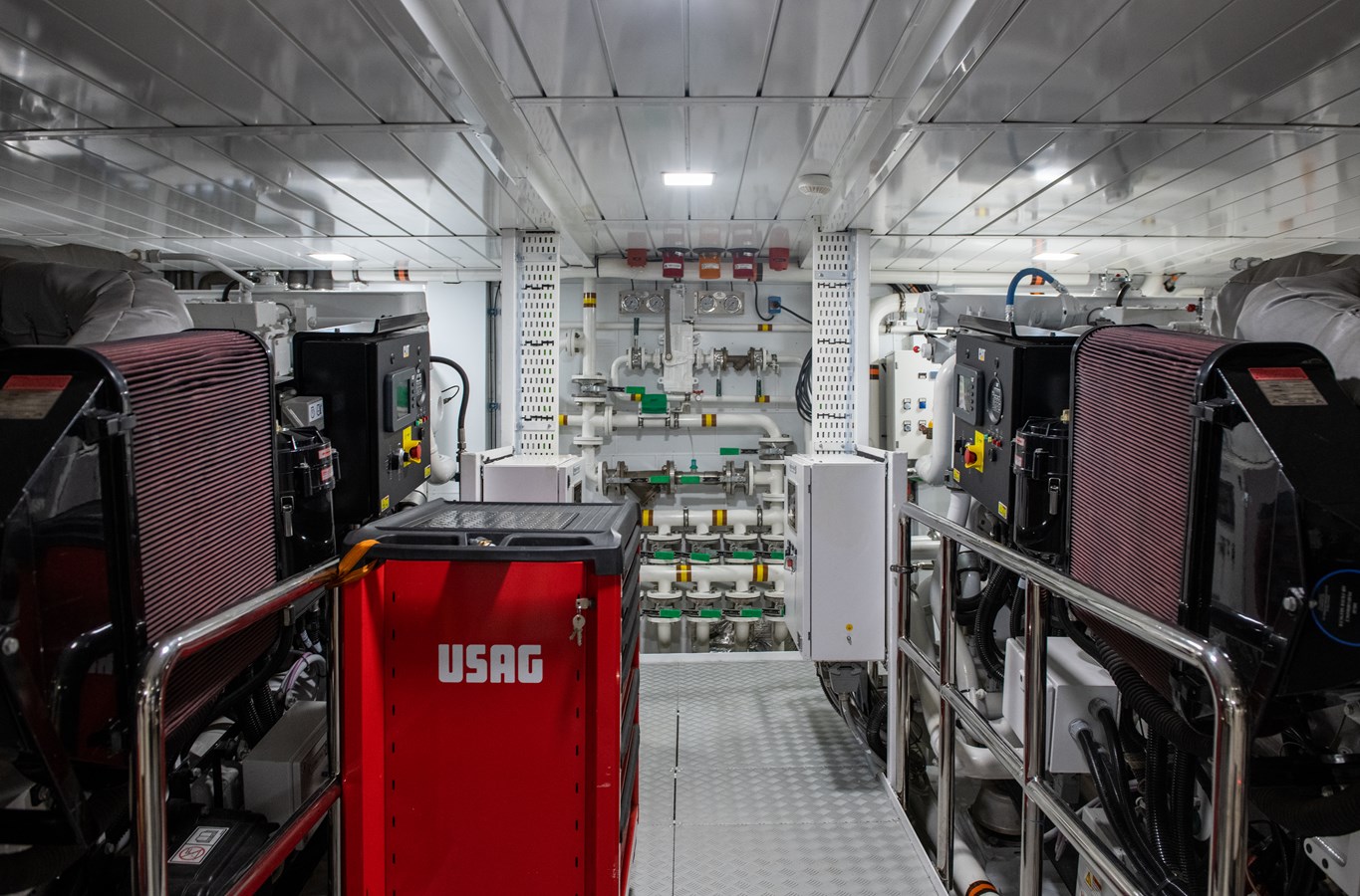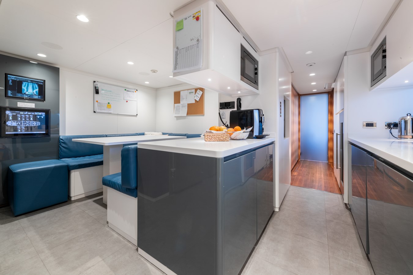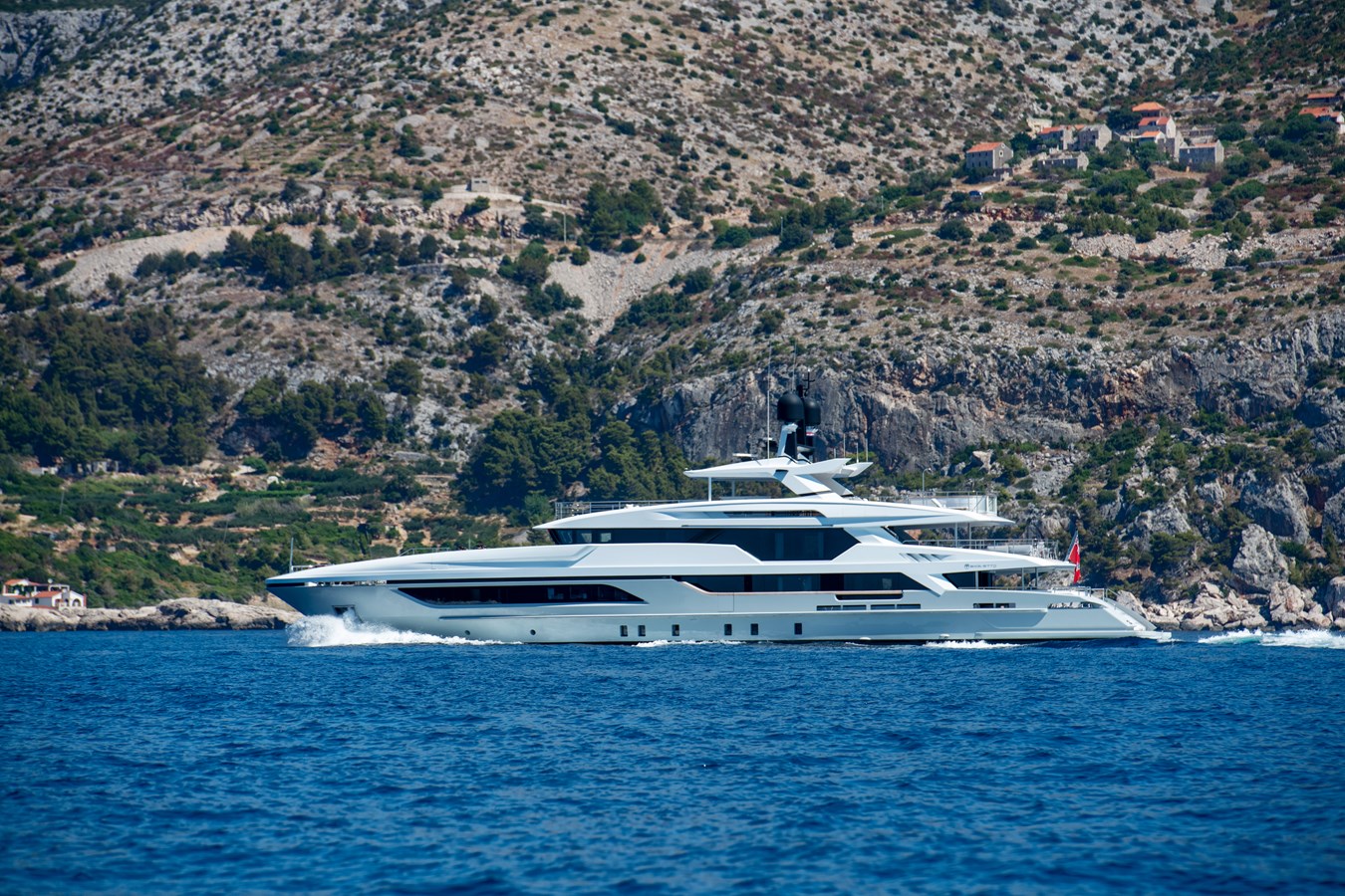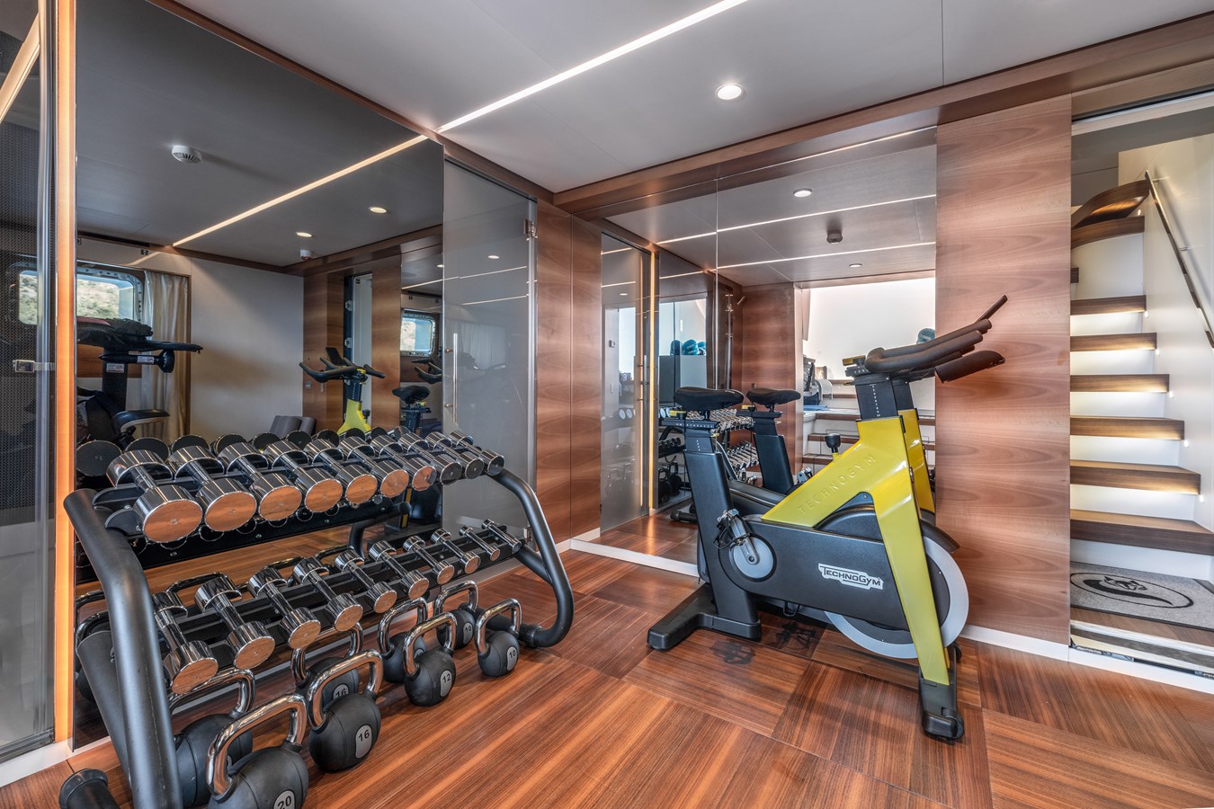 At the aft, she features an impressive beach club with a comfortable lounge area, gym, and steam room/Hammam, all opening onto a generous fold-down platform. A floating dock provides effortless access to the full array of water toys, completing the ultimate on-water leisure experience.