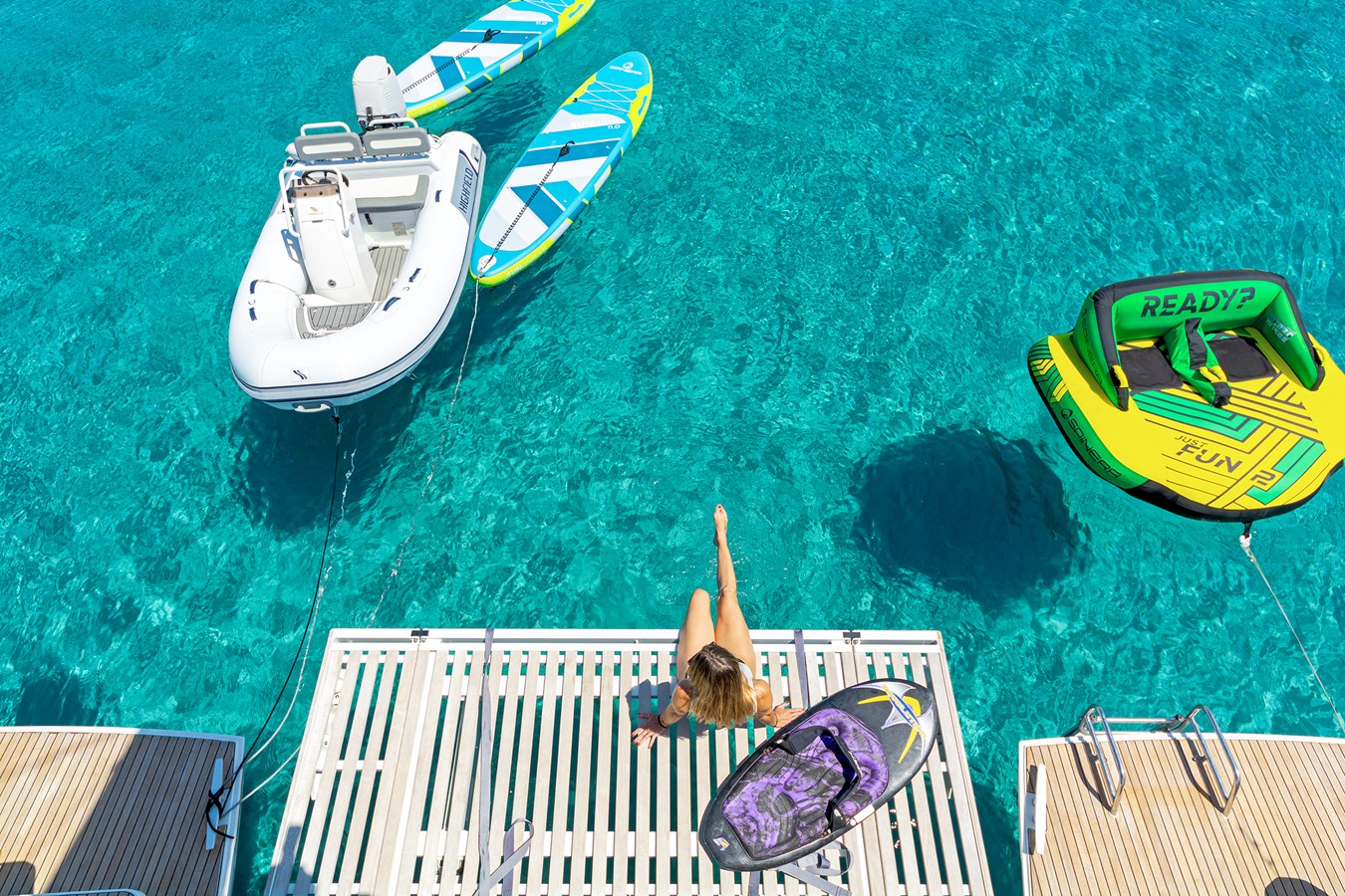 Step aboard MY STAR, a stunning Lagoon 46 catamaran built in 2022, offering the perfect blend of luxury, comfort, and adventure. Designed for both relaxation and thrill-seeking, she boasts spacious living areas, modern interiors, and plenty of outdoor lounging space to soak in breathtaking views. Whether you want to unwind on the expansive deck, bask in the sun, or dive into the crystal-clear waters, this yacht has it all. She comes fully equipped with an exciting selection of water toys, ensuring endless fun on the sea.