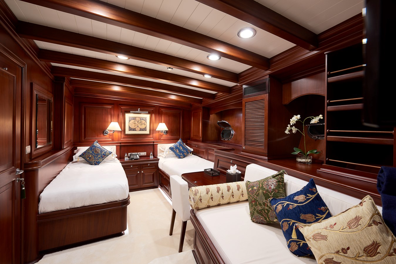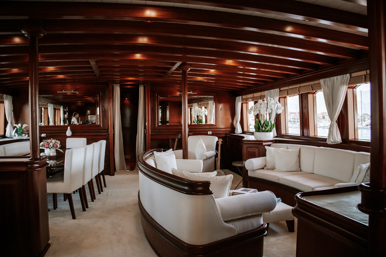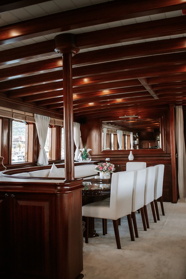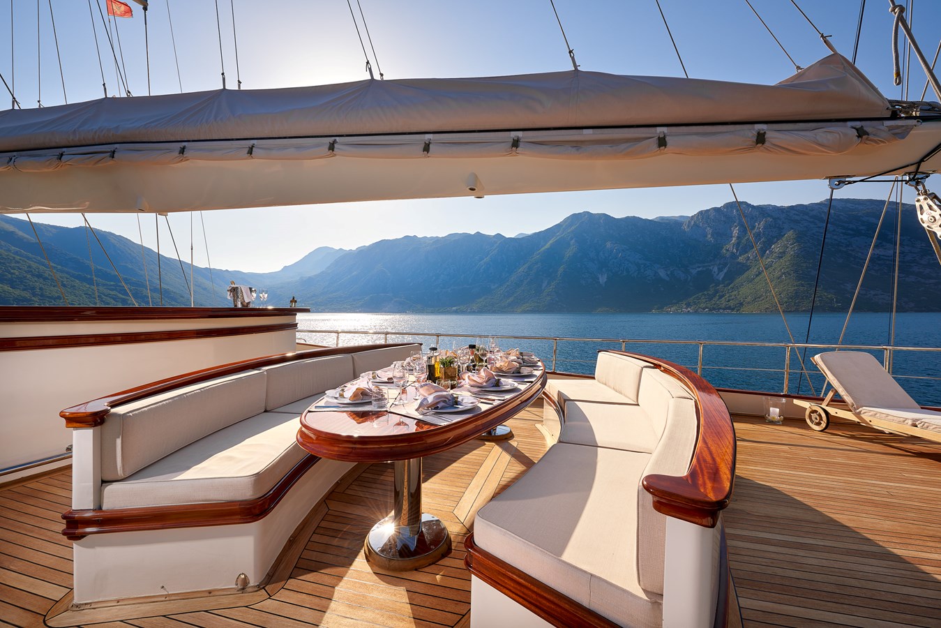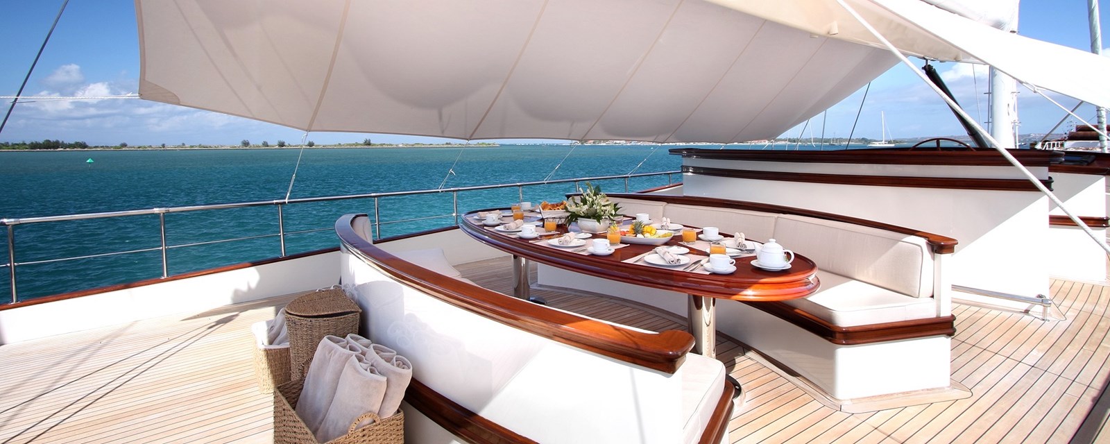 The crew! The crew has been onboard for an extended period of time and that in and of itself says enough. Captain Ljubo is, if I may say so myself, an absolute legend. Launched in 2009 and fully refitted in 2022 and 2025, Riana is a custom-built 42-meter, 220-ton luxury sailing yacht with the elegance & grace of the traditional sailing yachts of yesteryear but with all the modern amenities one may expect.Living, dining and guest cabins are luxuriously fitted and furnished with high ceilings. Outdoor areas have expansive open decks with shaded areas for an optimum experience of the nature and oceanic surroundings that abound en-route, at anchor or at port.Dining and entertainment areas include a lounge, bar and dining area for up to 10 people. With three extensive areas for sunbathing and entertaining, guests may relax on the flybridge, forward or aft decks. There are also two outdoor dining areas on the flybridge and aft decks which can be shaded during the day and open to the stars at night.