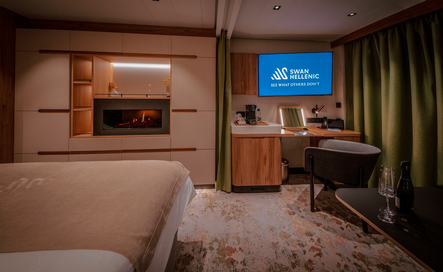 Built in the Helsinki Shipyard in Finland, SH Vega features elegant interiors, wide unobstructed views throughout the ship, and dedicated expedition facilities – so you can explore remote destinations in style and comfort. Whether you’re taking in remarkable scenery from a panoramic sauna, dining in a world-classrestaurant, or unwinding in your sumptuous stateroom, SH Vega has you covered.SH Vega’s bespoke interiors are spacious and tasteful, with plush furnishing, and floor-to ceiling windows that give you unobstructed views of someof the world’s most incredible landscapes. Bold clean lines blend with wood, metal and natural fabrics to create welcoming spaces, which offer casual comfort.Outstanding food is all part of your boutique travel experience. Get ready to explore gastronomic excellence as Swan Hellenic’s world-renowned chefs take you on an international culinary journey.Every evening, the stunning Swan Restaurant transforms into a gourmet venue serving the sublime creations of our award-winning consultant chefs. Prepareto discover creative Asian and Italian fusion cuisine, or enjoy inventive French and International classics as your culinary creators take you on a parallel voyage of extraordinary flavours and sensations.Outstanding food is all part of your boutique travel experience. Get ready to explore gastronomic excellence as Swan Hellenic’s world-renowned chefs take youon an international culinary journey.Whether you’re seeking a moment of quiet reflection, a chance to recharge your batteries, or an opportunity to investigate the wonders of the natural world, the SH Vega has a variety of relaxing and rejuvenating spaces to help make your voyage with us truly unforgettable.With its expansive panoramic views, SH Vega’s Observation Lounge is a natural hub for all manner of onboard activities. Whether you’re enjoying an informativelecture, meeting up with new friends, listening to live music, or reflecting on your day’s adventures with a cocktail, this inviting space is a sophisticated space,designed with your comfort in mind.Immerse yourself in the nature, history and culture of every locale you visit on your cruise with special briefings, lectures and presentations given in the Observation Lounge. Experienced expedition guides are handpicked for each cruise, and these expert academic lecturers are sure to make your time on boardboth fascinating and informative.SH Vega’s cutting-edge sound equipment allows for dazzling performances by professional musicians and singers, as well as intimate chamber concerts.
